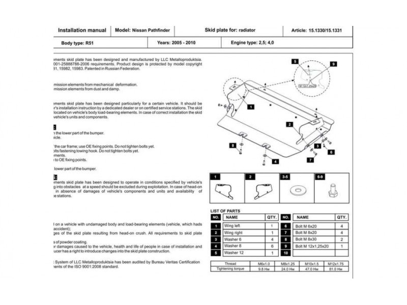Přední rám nerez se spodním chráničem a EC homologací NISSAN NAVARA, 2005-2010
