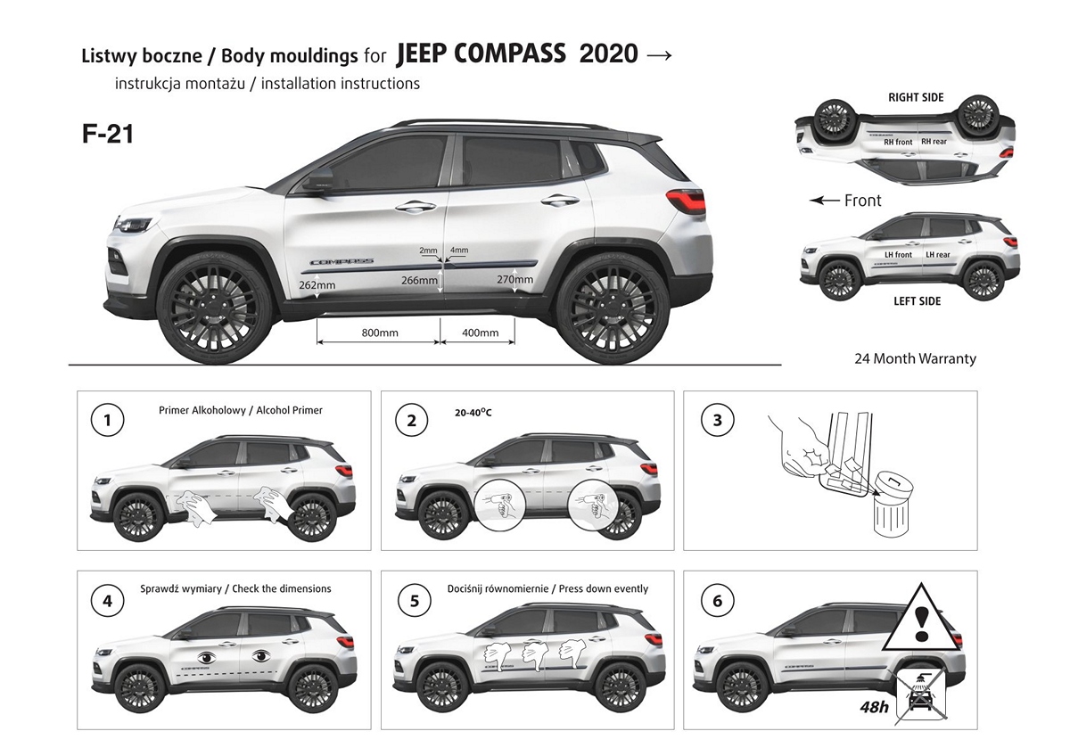 Ochranné boční lišty na dveře, Jeep Compass II, 2020- , Facelift