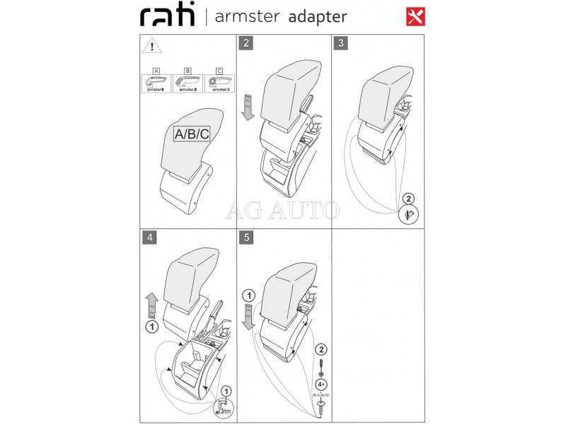 Samotná montáž loketní opěrky je velice snadná a nevyžaduje návštěvu autoservisu. Adaptéry pro montáž loketní opěrky jsou vyráběny na konkrétní typy vozidel, a proto dokonale pasují. Nedostane se Vám do rukou žádný univerzální adaptér, který by způsobil problémy při montáži.