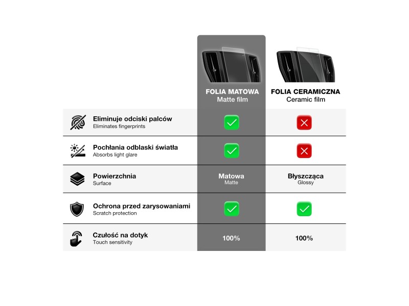 Keramická fólie je vyrobena z mimořádně tvrdého materiálu, který poskytuje účinnou ochranu proti poškrábání. Displej vašeho vozidla bude chráněn před poškozením způsobeným klíči, mincemi nebo jinými ostrými předměty.