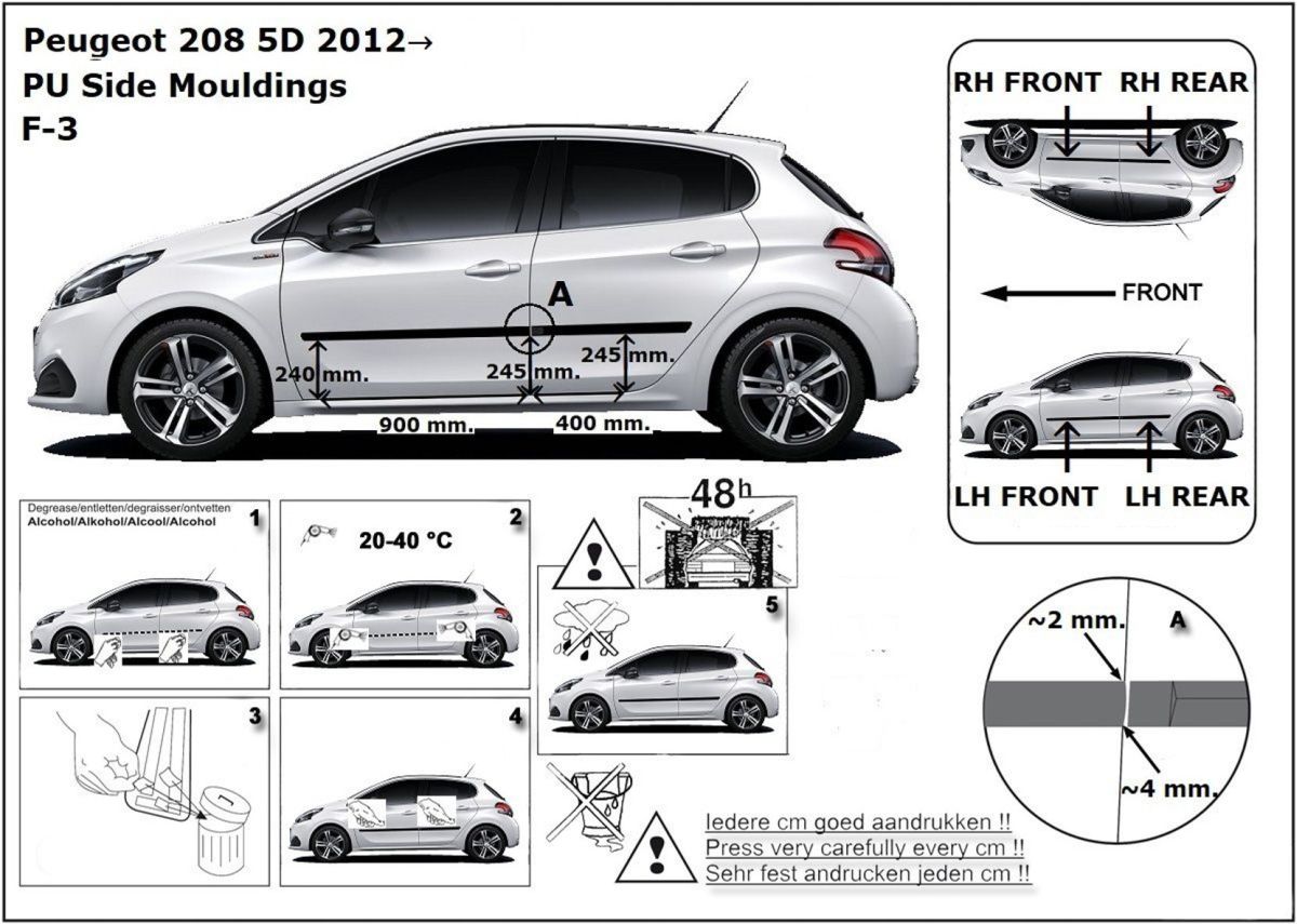 Ochranné boční lišty na dveře, Peugeot 208, 2012-2019, 3 dveř.