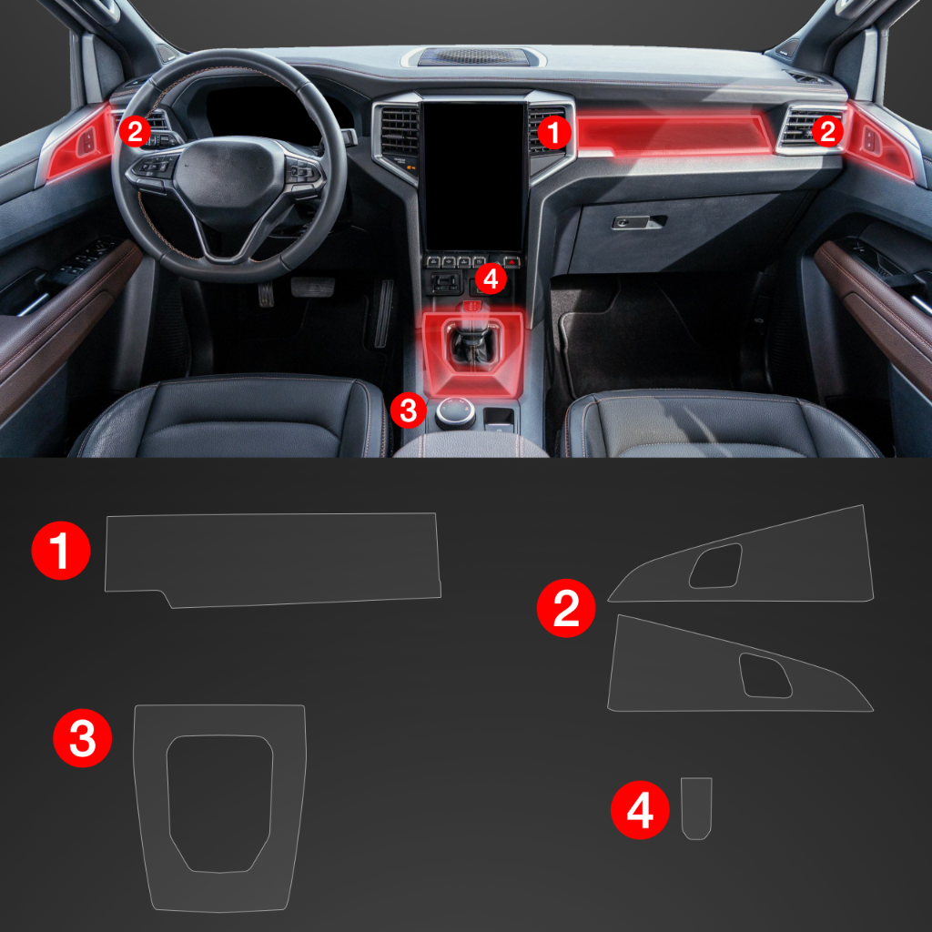 Ochranná fólie interiéru PianoSkin 5v1, VW Amarok II, 2022- ,