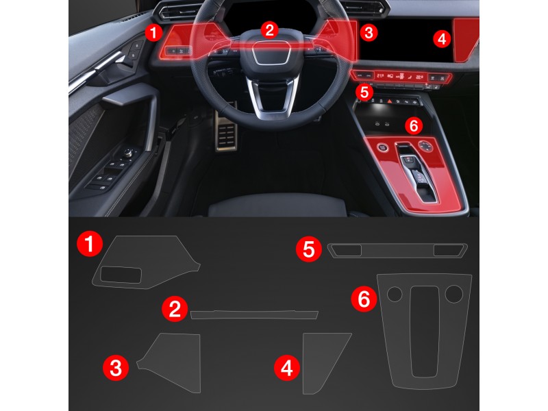 Ochranná fólie interiéru PianoSkin 6v1, Audi A3, 8Y, 2020-2024