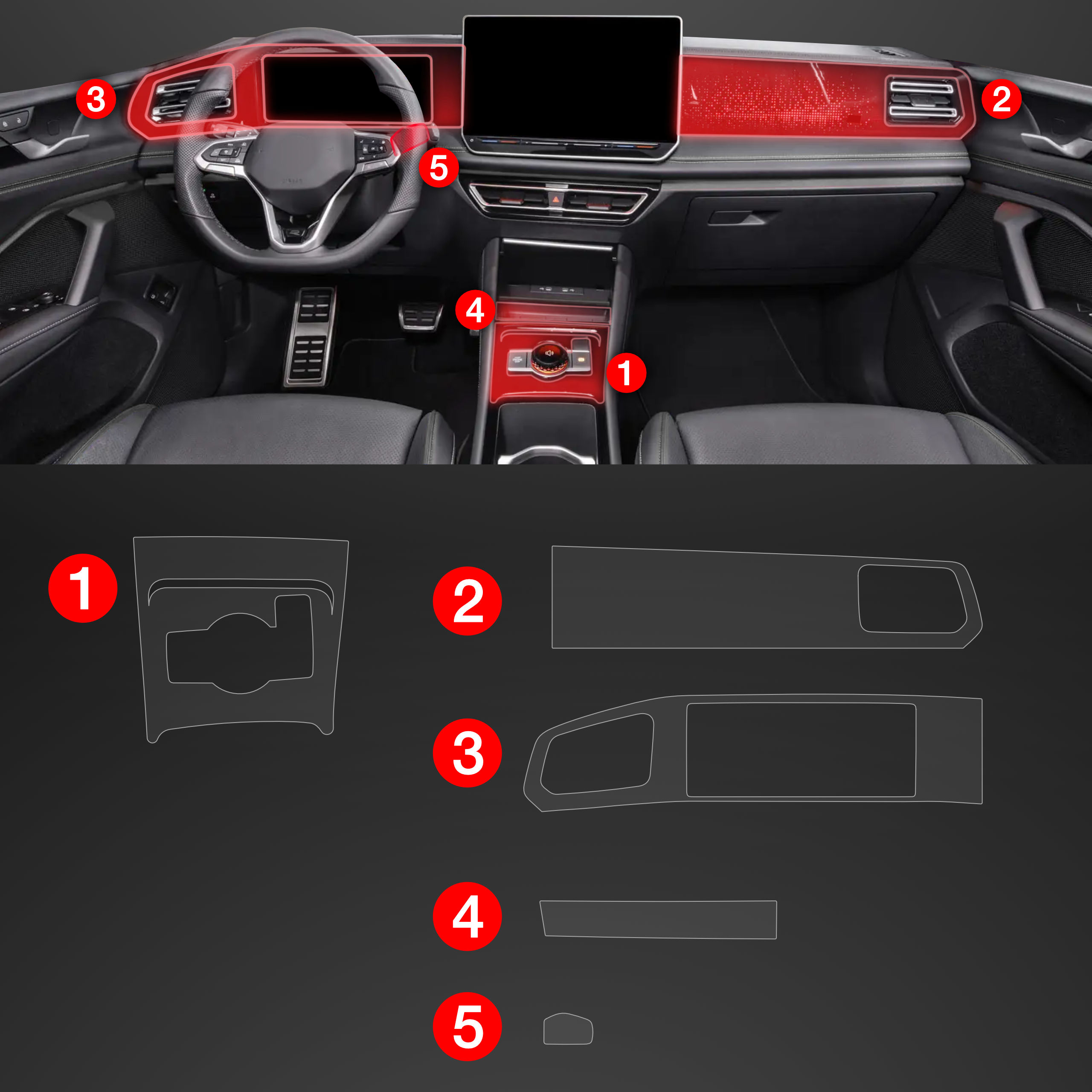 Ochranná fólie interiéru PianoSkin 5v1, VW Tiguan III, 2024- ,