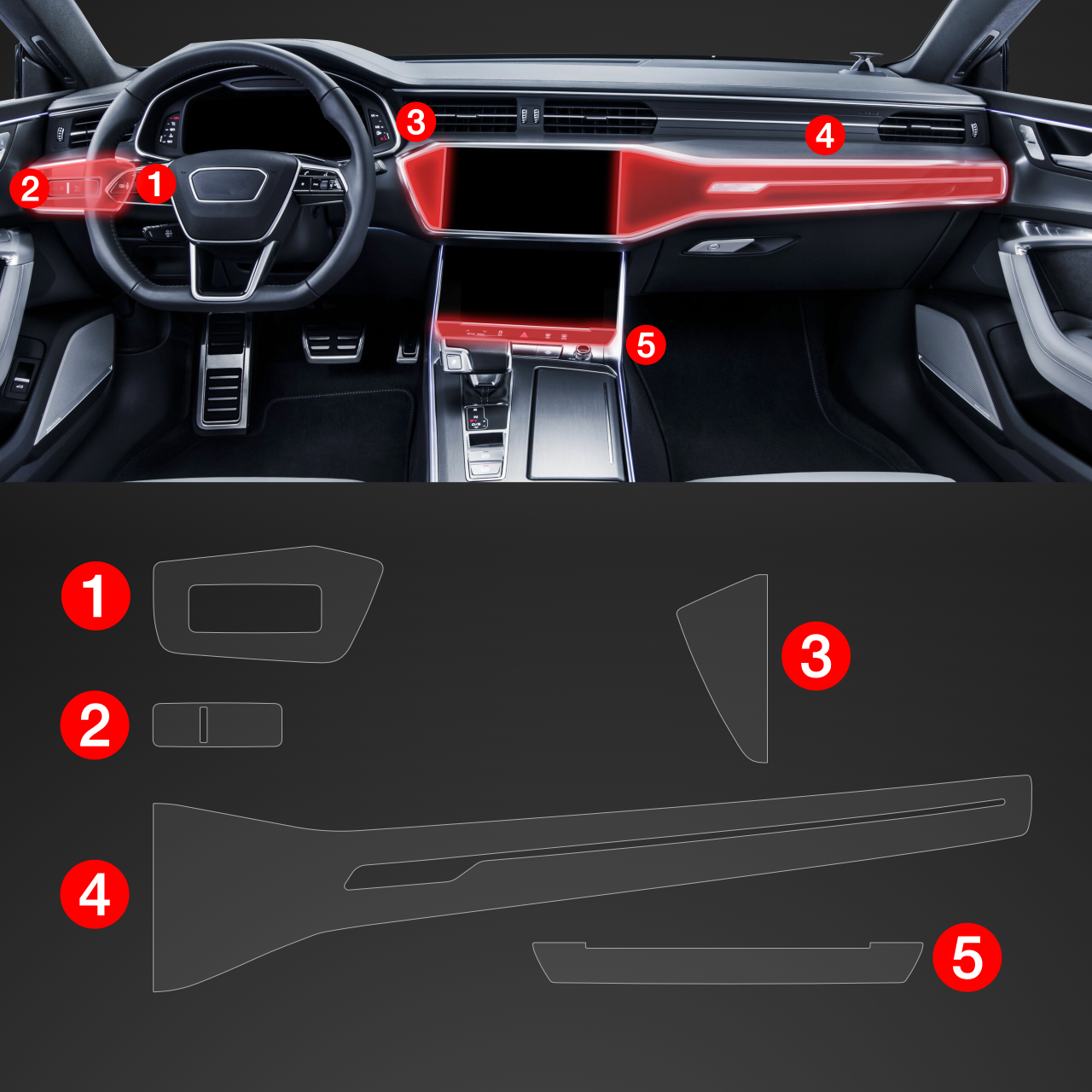Ochranná fólie interiéru PianoSkin 5v1, Audi A7, C8, 2017- ,