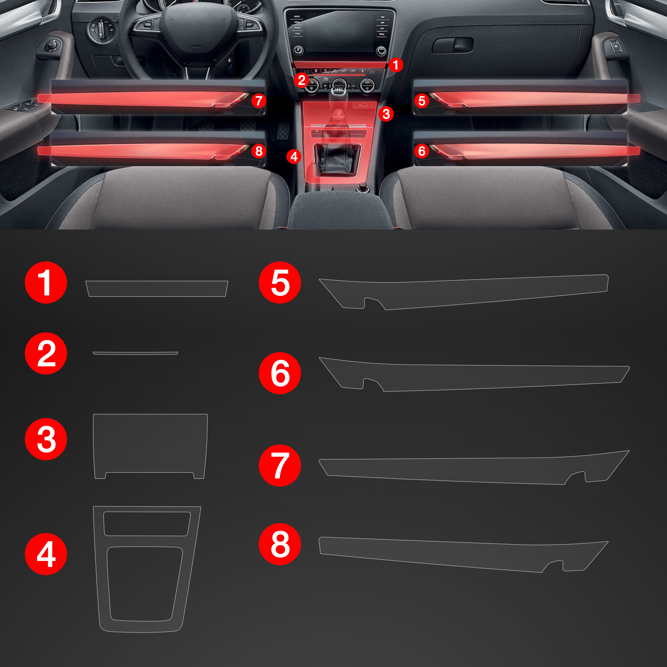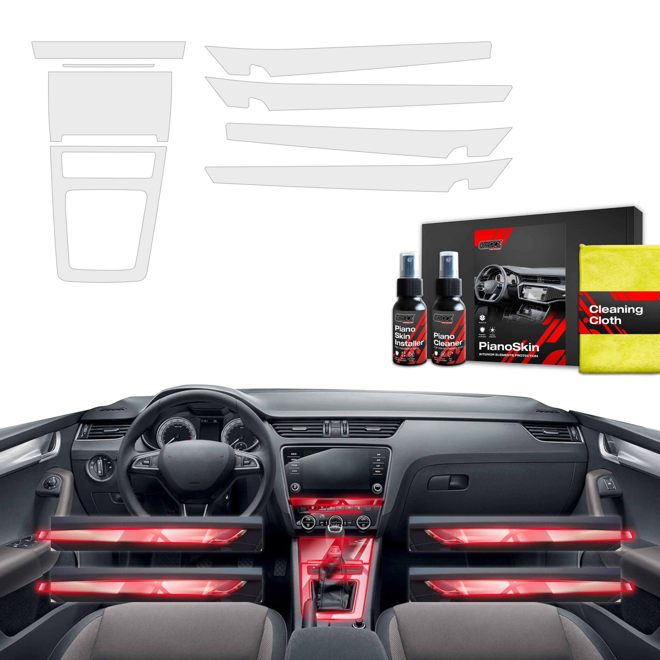 Ochranná fólie interiéru PianoSkin 8v1, Škoda Octavia III, 2017-2020