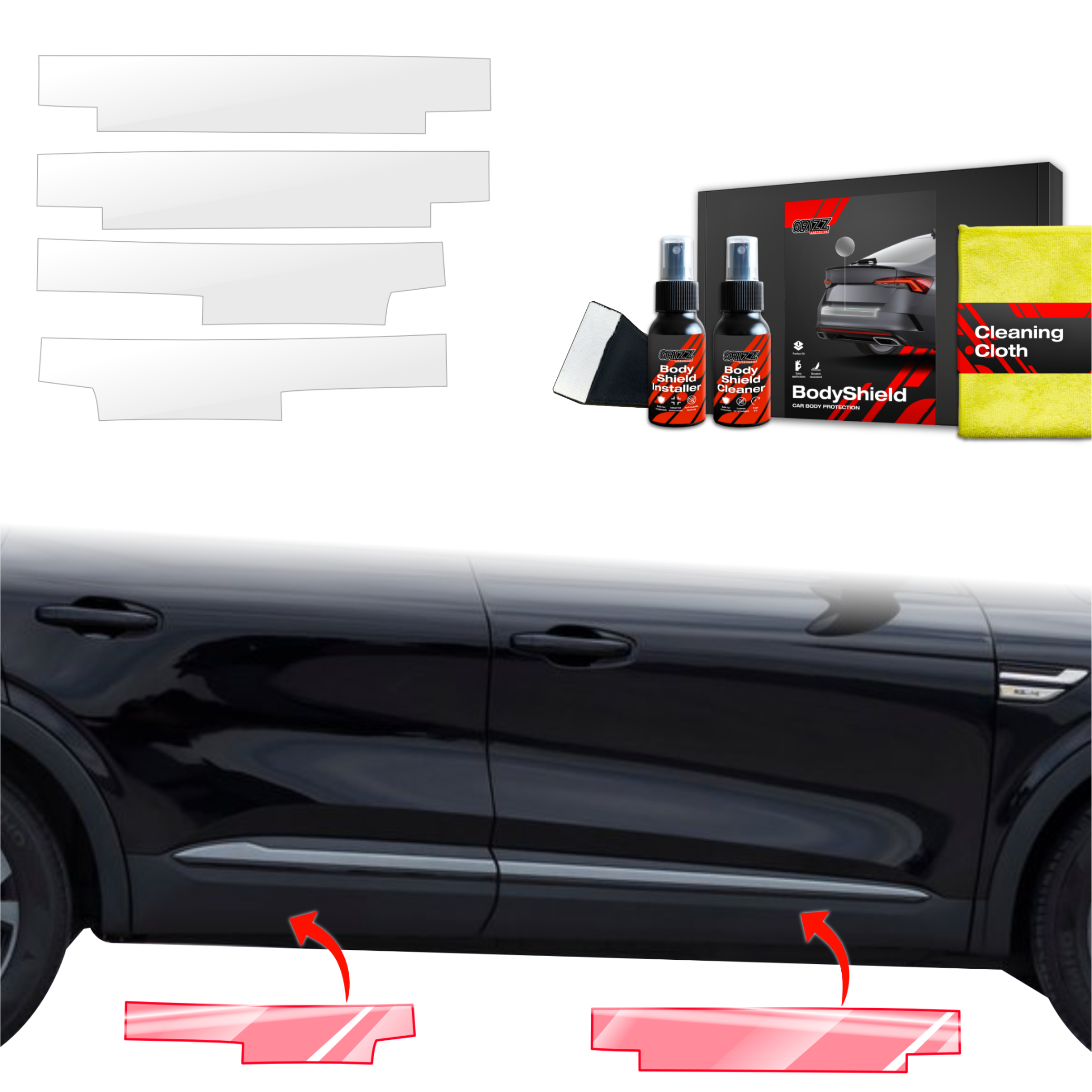 Grizz BodyShield je prvotřídní ochranná fólie navržená k ochraně laku vašeho vozidla před mechanickým poškozením a nepříznivými vlivy. Díky vysoké pružnosti a samoregenerační schopnosti dokáže vyplnit drobné škrábance a udržet povrch vozidla v perfektním stavu. Fólie je vyříznuta na míru konkrétním modelům aut, což zajišťuje snadnou instalaci a bezchybné přizpůsobení.