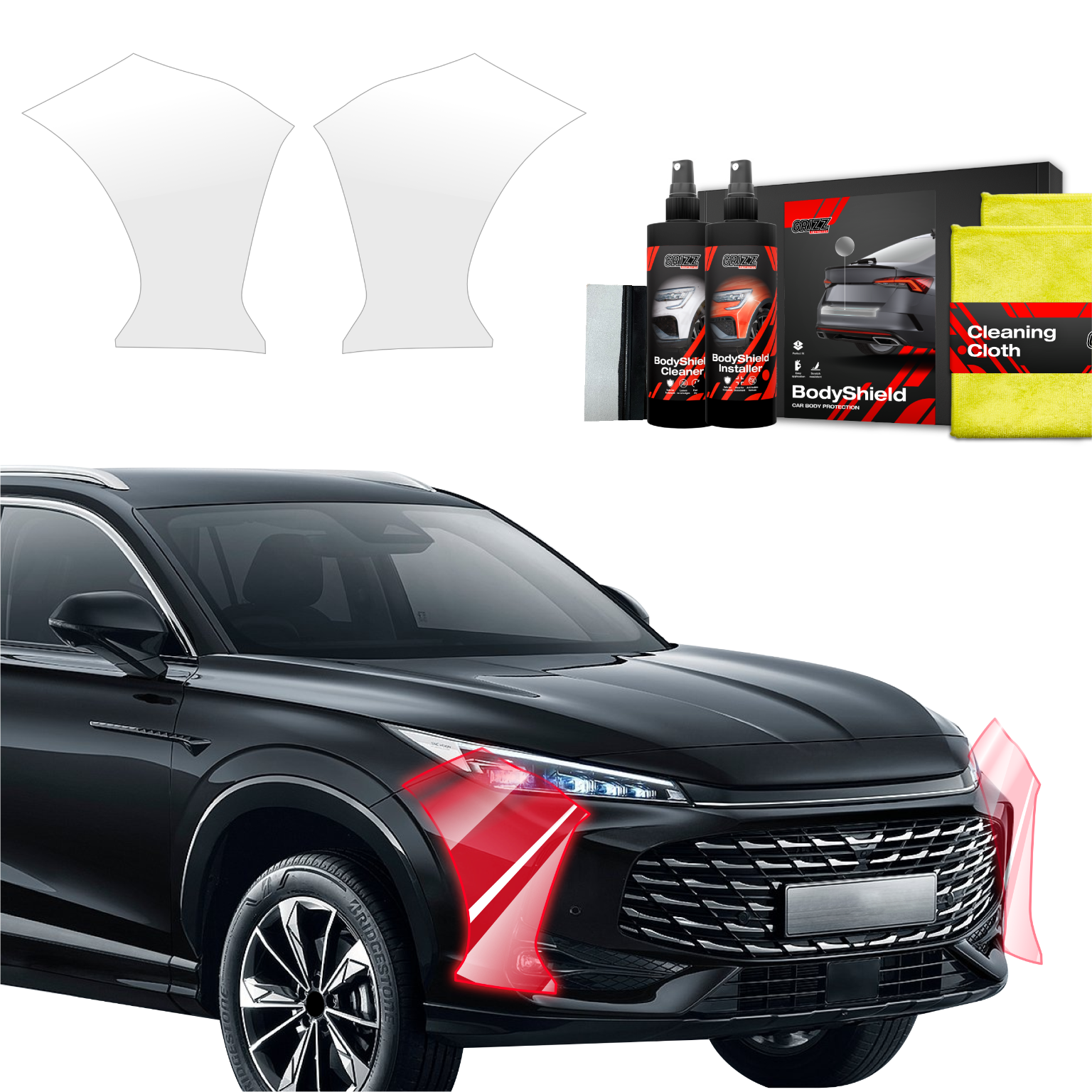 Grizz BodyShield je prvotřídní ochranná fólie navržená k ochraně laku vašeho vozidla před mechanickým poškozením a nepříznivými vlivy. Díky vysoké pružnosti a samoregenerační schopnosti dokáže vyplnit drobné škrábance a udržet povrch vozidla v perfektním stavu. Fólie je vyříznuta na míru konkrétním modelům aut, což zajišťuje snadnou instalaci a bezchybné přizpůsobení.