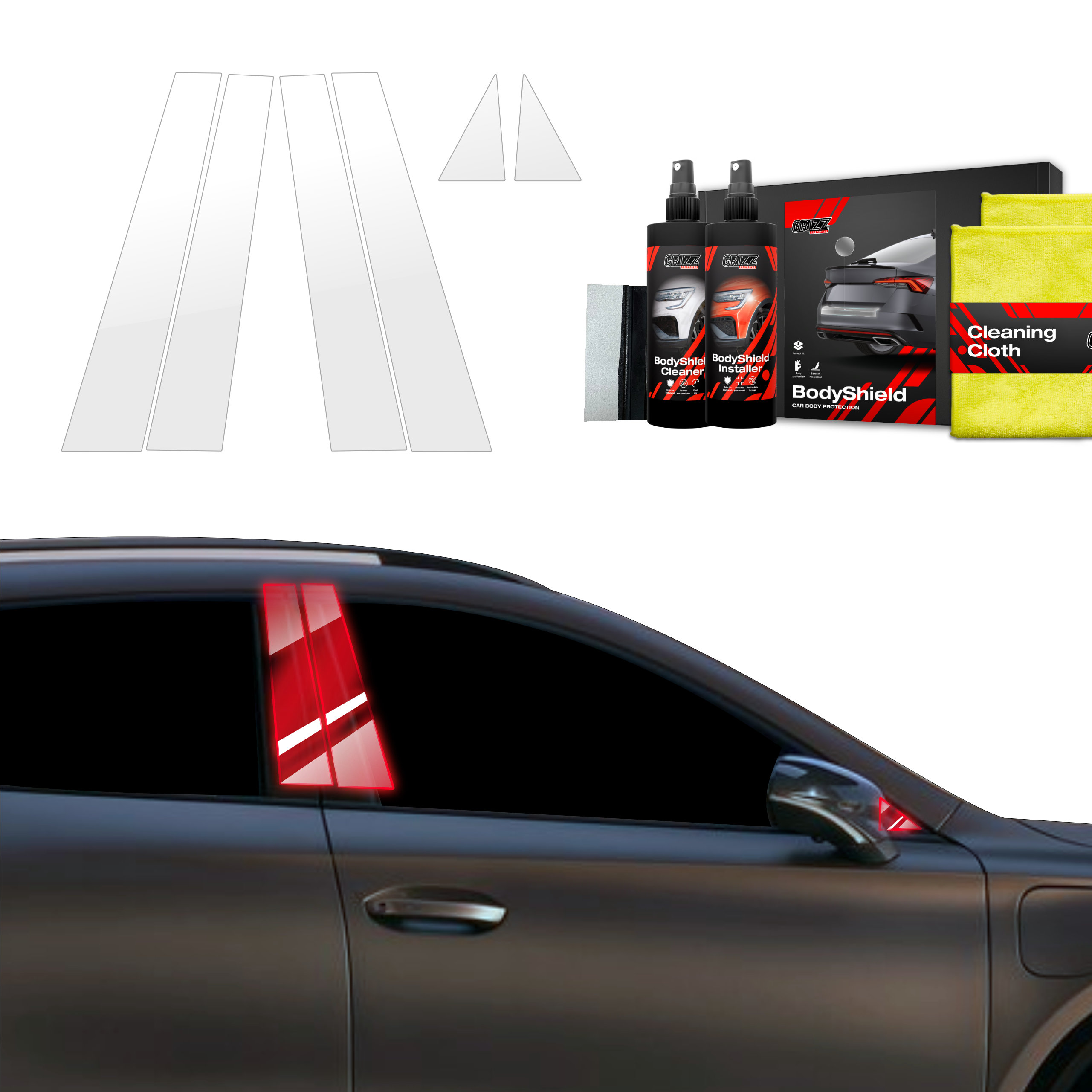 Grizz BodyShield je prvotřídní ochranná fólie navržená k ochraně laku vašeho vozidla před mechanickým poškozením a nepříznivými vlivy. Díky vysoké pružnosti a samoregenerační schopnosti dokáže vyplnit drobné škrábance a udržet povrch vozidla v perfektním stavu. Fólie je vyříznuta na míru konkrétním modelům aut, což zajišťuje snadnou instalaci a bezchybné přizpůsobení.