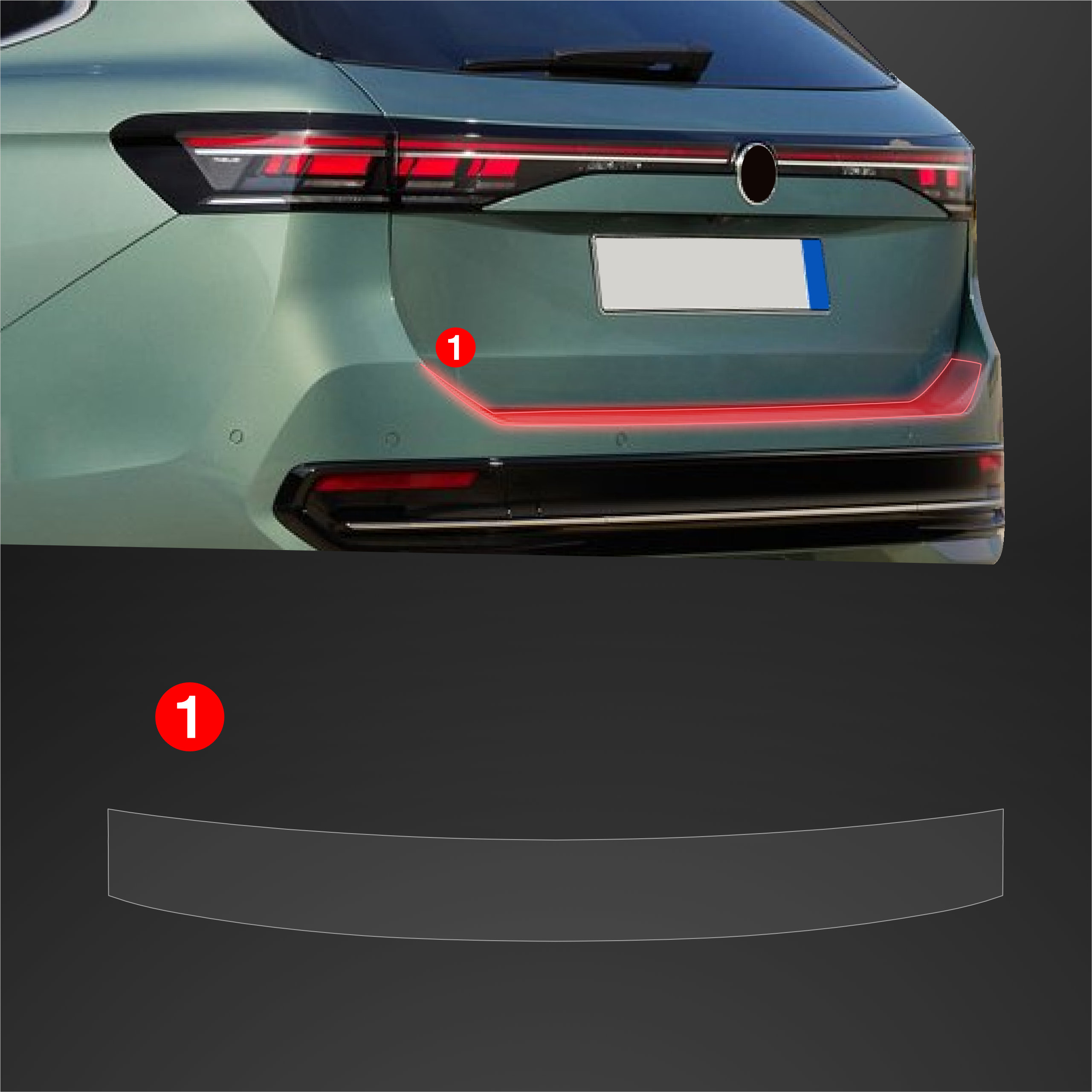 Lišta na nárazník - Kryt hrany kufru, VW Passat B9, 2024- ,Variant, Combi
