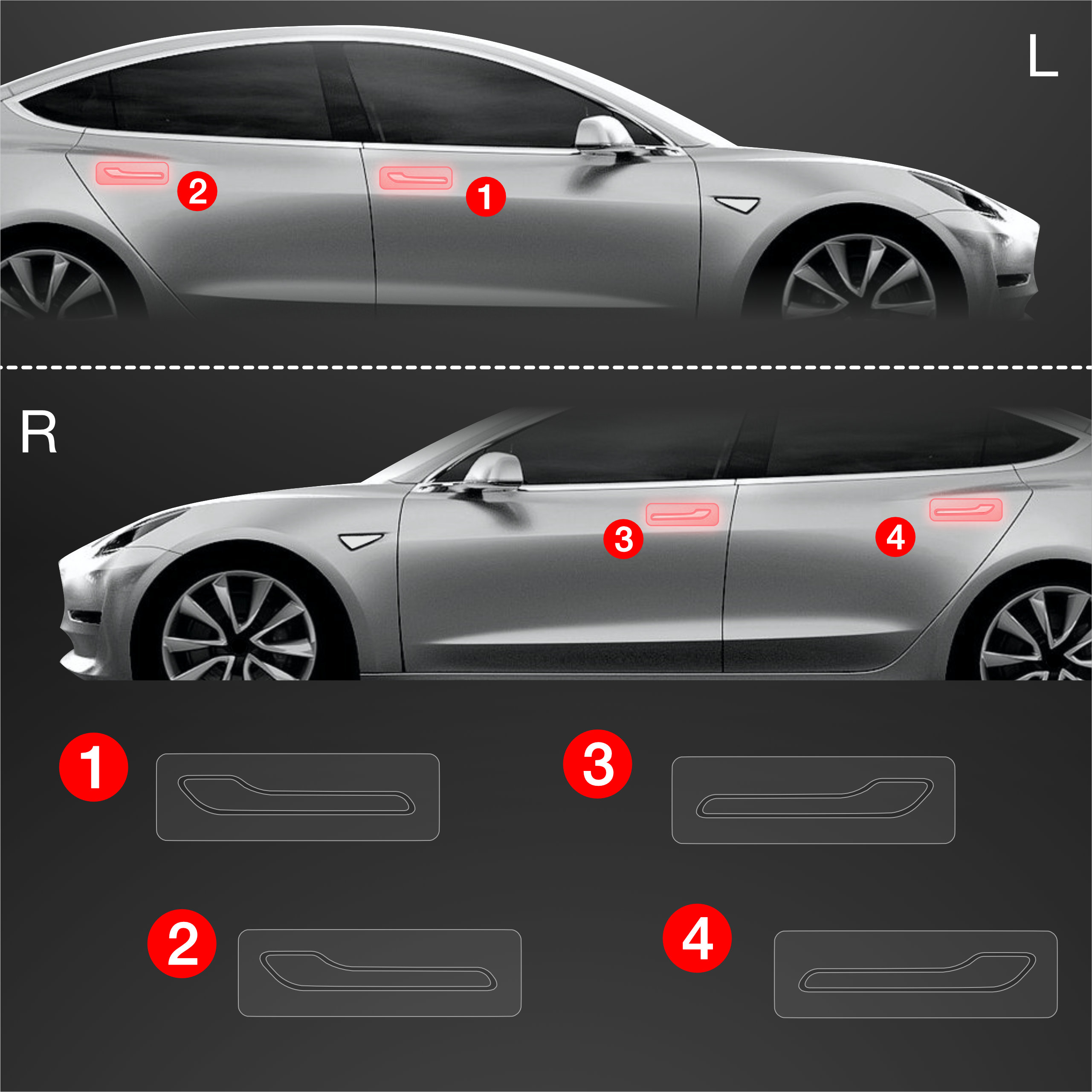 Ochranné fólie pod kliky, Tesla Model 3, 2017-2020
