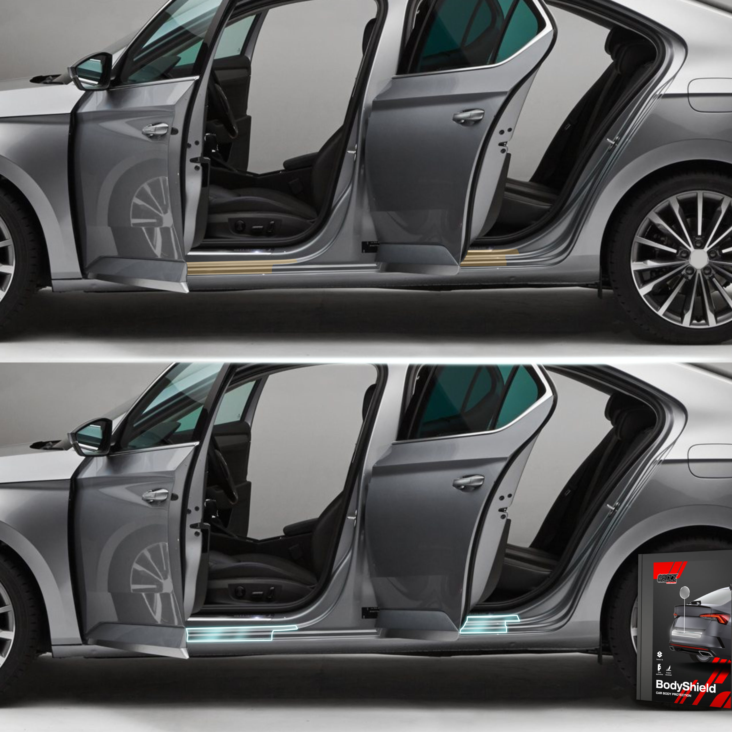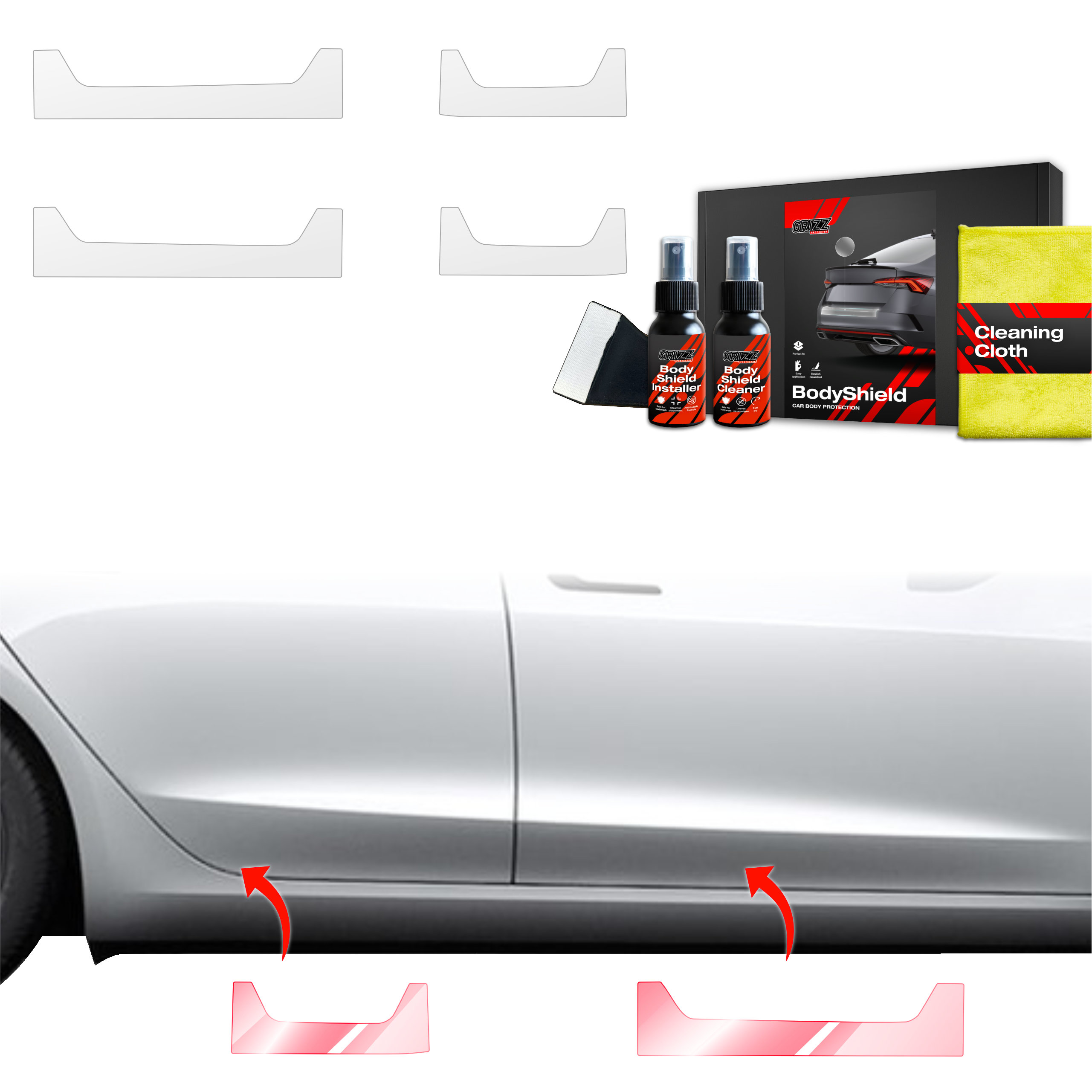 Grizz BodyShield je prvotřídní ochranná fólie navržená k ochraně laku vašeho vozidla před mechanickým poškozením a nepříznivými vlivy. Díky vysoké pružnosti a samoregenerační schopnosti dokáže vyplnit drobné škrábance a udržet povrch vozidla v perfektním stavu. Fólie je vyříznuta na míru konkrétním modelům aut, což zajišťuje snadnou instalaci a bezchybné přizpůsobení.