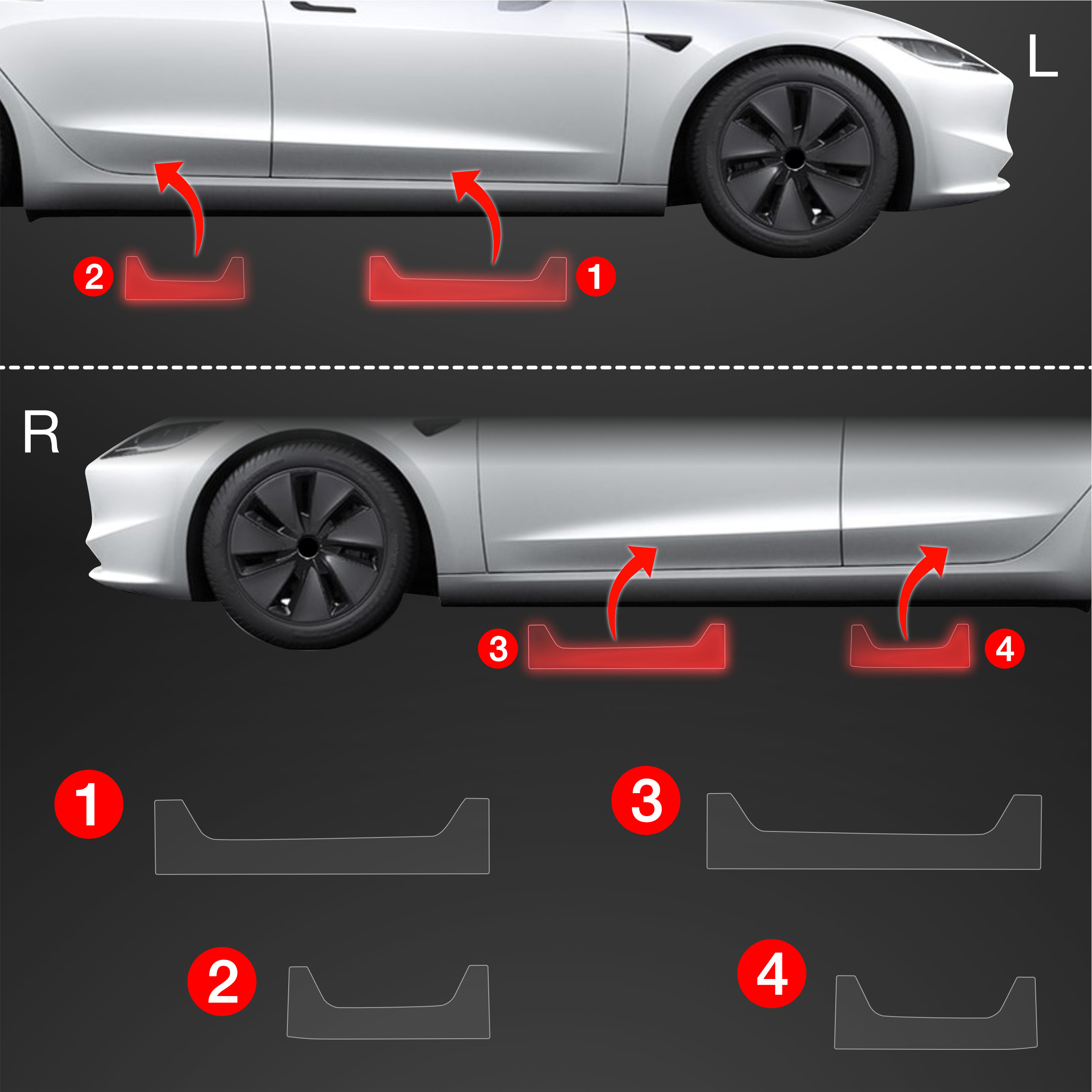 Ochranné fólie na prahy, Tesla Model 3, 2021-2023
