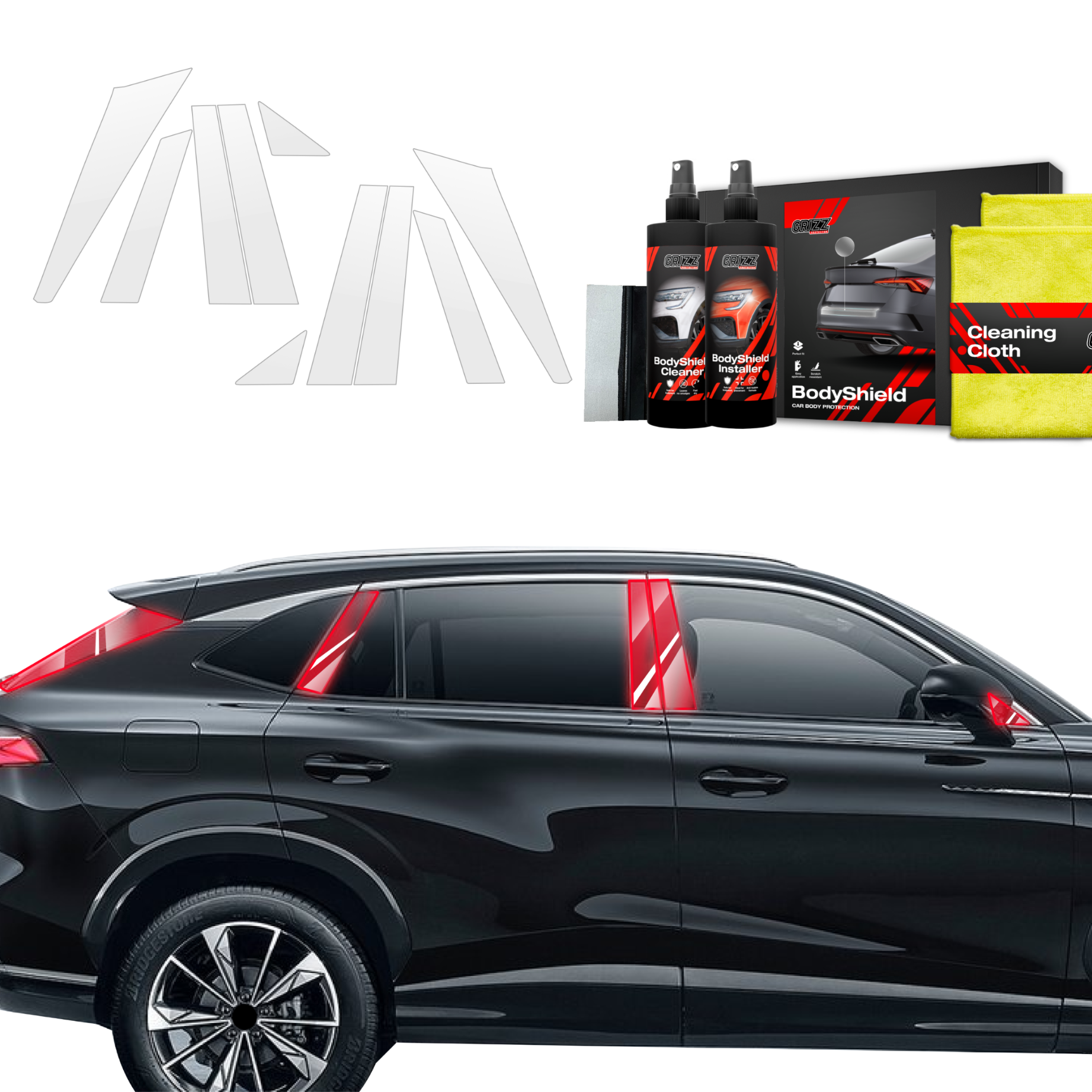 Grizz BodyShield je prvotřídní ochranná fólie navržená k ochraně laku vašeho vozidla před mechanickým poškozením a nepříznivými vlivy. Díky vysoké pružnosti a samoregenerační schopnosti dokáže vyplnit drobné škrábance a udržet povrch vozidla v perfektním stavu. Fólie je vyříznuta na míru konkrétním modelům aut, což zajišťuje snadnou instalaci a bezchybné přizpůsobení.