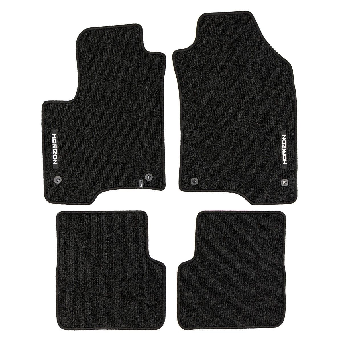 Textilní autokoberce Horizon jsou navrženy na míru pro konkrétní modely vozidel, čímž zajišťují maximální přizpůsobení a stabilitu. Díky pevnému uchycení na klipy nebo suchý zip se během jízdy neposouvají, což zvyšuje bezpečnost a pohodlí řidiče i spolujezdců. Koberce jsou vyrobeny z kvalitní smyčkové textilie, která je odolná proti oděru a zároveň příjemná na dotek.