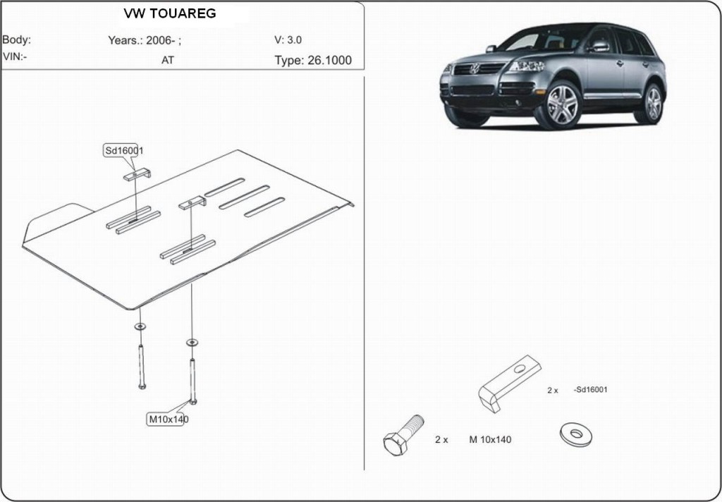 Kryt automatické převodovky, VOLKSWAGEN Touareg, (7LA, 7L6, 7L7), 2006->2010, ohýbaný, ocel 3 mm