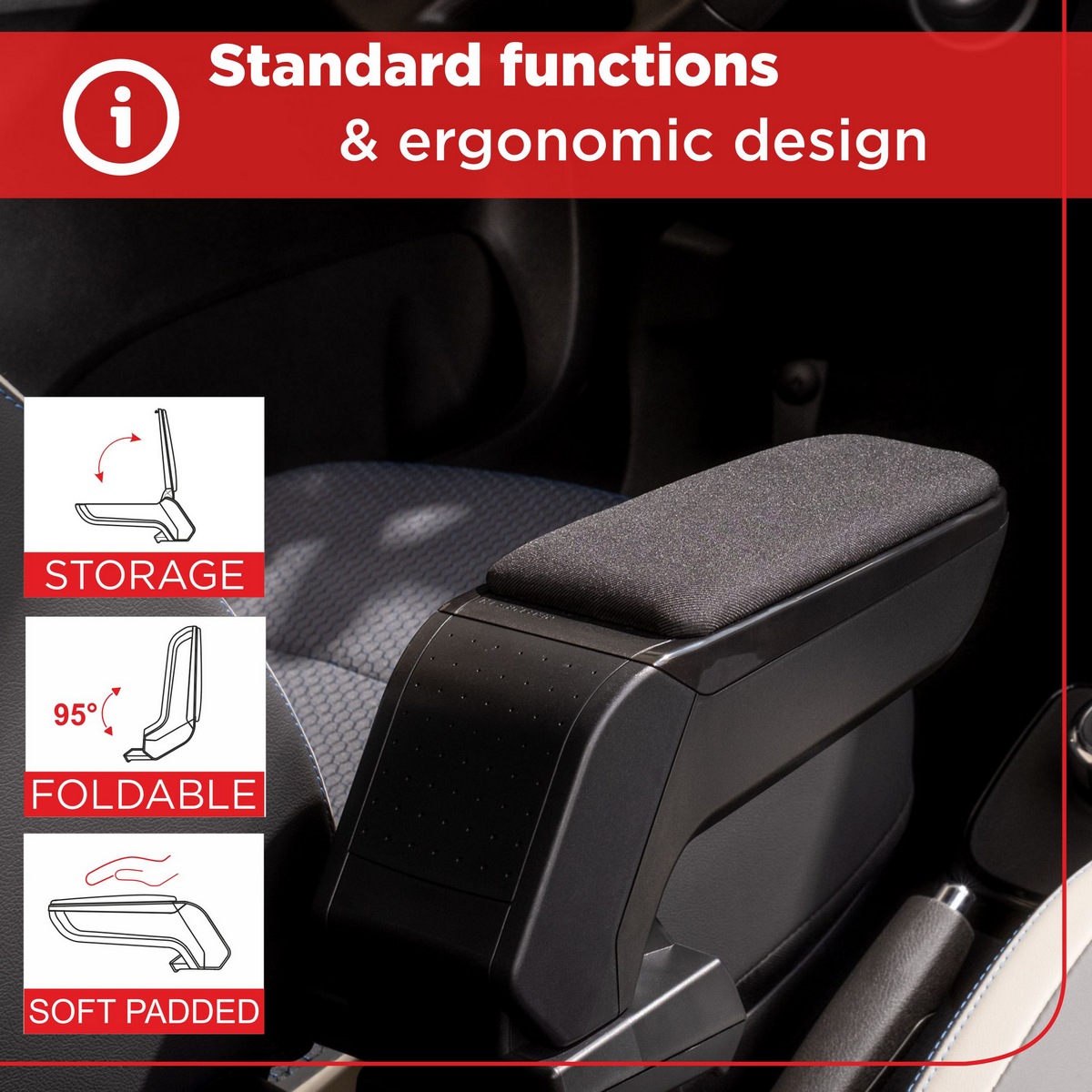 Loketní opěrky jsou praktickým a zároveň designově povedeným autodoplňkem, který zvyšuje komfort během cestování a dodává interiéru vozidla elegantní vzhled. Horní část opěrky je potažena kvalitní tkaninou, která je příjemná na dotek, odolná a ladí s interiérem většiny vozidel.