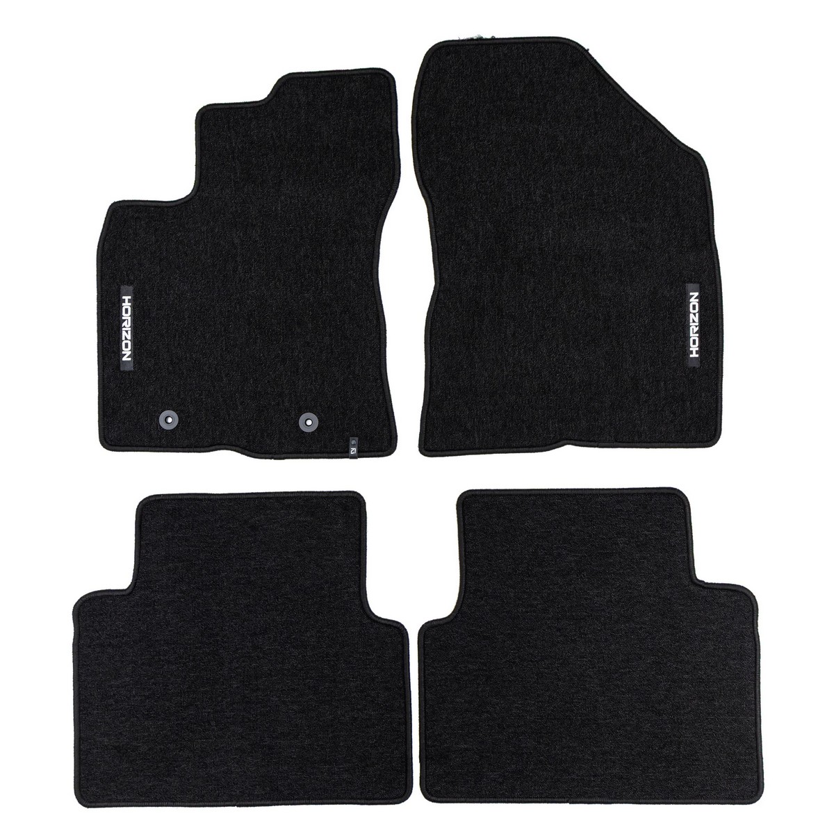 Textilní autokoberce Horizon jsou navrženy na míru pro konkrétní modely vozidel, čímž zajišťují maximální přizpůsobení a stabilitu. Díky pevnému uchycení na klipy nebo suchý zip se během jízdy neposouvají, což zvyšuje bezpečnost a pohodlí řidiče i spolujezdců. Koberce jsou vyrobeny z kvalitní smyčkové textilie, která je odolná proti oděru a zároveň příjemná na dotek.