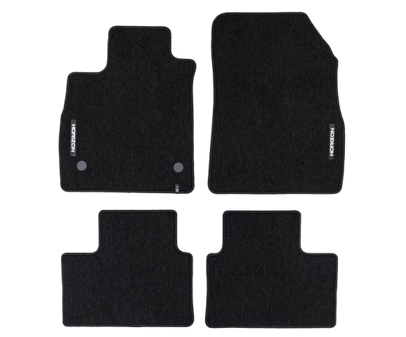 Textilní autokoberce Horizon jsou navrženy na míru pro konkrétní modely vozidel, čímž zajišťují maximální přizpůsobení a stabilitu. Díky pevnému uchycení na klipy nebo suchý zip se během jízdy neposouvají, což zvyšuje bezpečnost a pohodlí řidiče i spolujezdců. Koberce jsou vyrobeny z kvalitní smyčkové textilie, která je odolná proti oděru a zároveň příjemná na dotek.