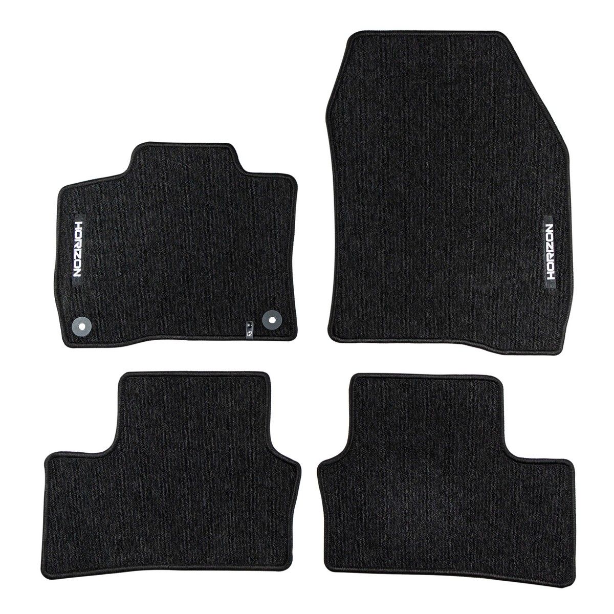 Textilní autokoberce Horizon jsou navrženy na míru pro konkrétní modely vozidel, čímž zajišťují maximální přizpůsobení a stabilitu. Díky pevnému uchycení na klipy nebo suchý zip se během jízdy neposouvají, což zvyšuje bezpečnost a pohodlí řidiče i spolujezdců. Koberce jsou vyrobeny z kvalitní smyčkové textilie, která je odolná proti oděru a zároveň příjemná na dotek.