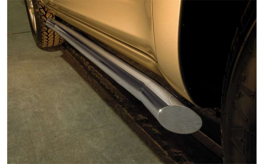 Boční rám dodá Vašemu autu exkluzivní vzhled a podtrhne jeho dravý a sportovní charakter.Rám je vyroben z vysoce kvalitních nerezových trubek z ušlechtilé oceli. Při výrobě se používá nejmodernější Hightech technologie včetně 3D-Laseranlage a CNC strojů řízených počítačem. Tyto technologie umožňují vyrobit rám z jednoho kusu, čímž je zaručen dokonalý ladný tvar bez zbytečných svárů.
