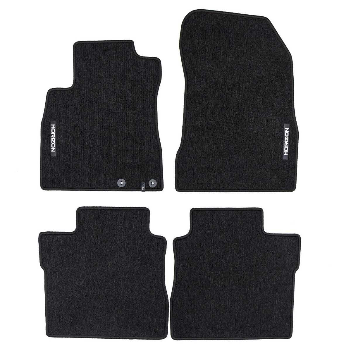 Textilní autokoberce Horizon jsou navrženy na míru pro konkrétní modely vozidel, čímž zajišťují maximální přizpůsobení a stabilitu. Díky pevnému uchycení na klipy nebo suchý zip se během jízdy neposouvají, což zvyšuje bezpečnost a pohodlí řidiče i spolujezdců. Koberce jsou vyrobeny z kvalitní smyčkové textilie, která je odolná proti oděru a zároveň příjemná na dotek.