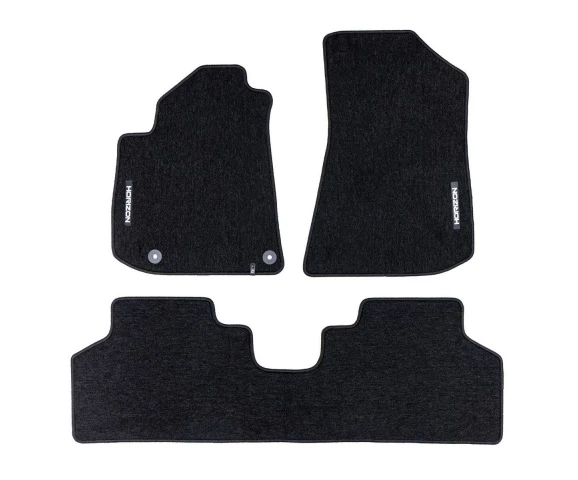 Textilní autokoberce Horizon jsou navrženy na míru pro konkrétní modely vozidel, čímž zajišťují maximální přizpůsobení a stabilitu. Díky pevnému uchycení na klipy nebo suchý zip se během jízdy neposouvají, což zvyšuje bezpečnost a pohodlí řidiče i spolujezdců. Koberce jsou vyrobeny z kvalitní smyčkové textilie, která je odolná proti oděru a zároveň příjemná na dotek.