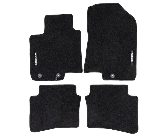 Textilní autokoberce Horizon jsou navrženy na míru pro konkrétní modely vozidel, čímž zajišťují maximální přizpůsobení a stabilitu. Díky pevnému uchycení na klipy nebo suchý zip se během jízdy neposouvají, což zvyšuje bezpečnost a pohodlí řidiče i spolujezdců. Koberce jsou vyrobeny z kvalitní smyčkové textilie, která je odolná proti oděru a zároveň příjemná na dotek.