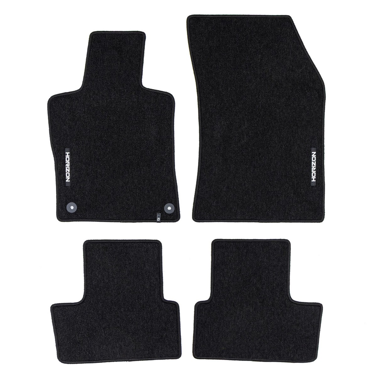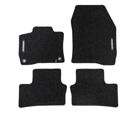 Textilní autokoberce Horizon jsou navrženy na míru pro konkrétní modely vozidel, čímž zajišťují maximální přizpůsobení a stabilitu. Díky pevnému uchycení na klipy nebo suchý zip se během jízdy neposouvají, což zvyšuje bezpečnost a pohodlí řidiče i spolujezdců. Koberce jsou vyrobeny z kvalitní smyčkové textilie, která je odolná proti oděru a zároveň příjemná na dotek.