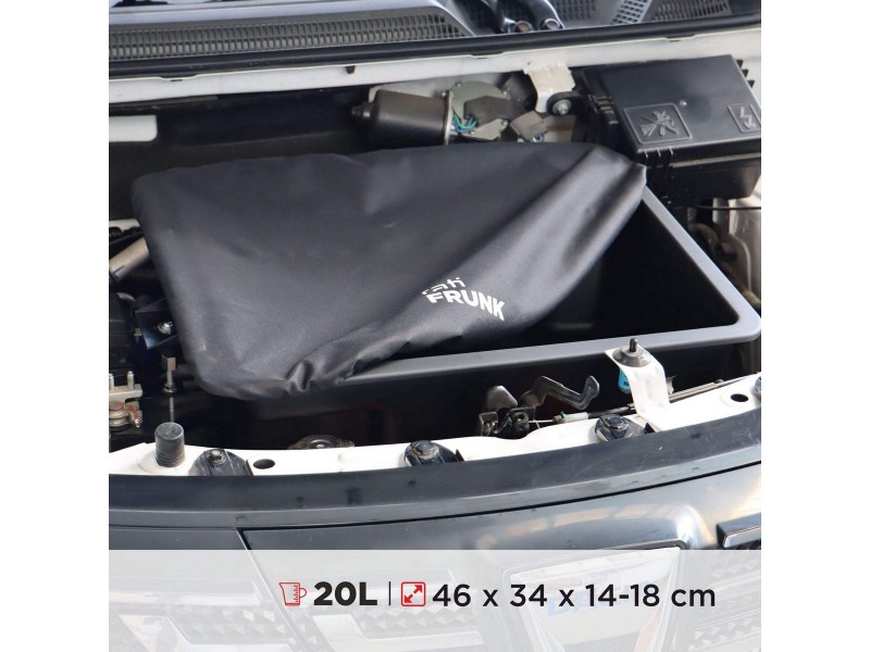 Frunk má kompaktní rozměry 46×34×14–18 cm a objem 20 litrů, což z něj činí ideálního společníka pro denní použití. Instalace frunku je snadná a trvá přibližně 15 minut díky montážní sadě, která je součástí balení. S frunkem se tak stává prostor pod kapotou elektrického auta nejen praktickým, ale i funkčním a bezpečným úložištěm pro vše, co potřebujete při svých cestách.