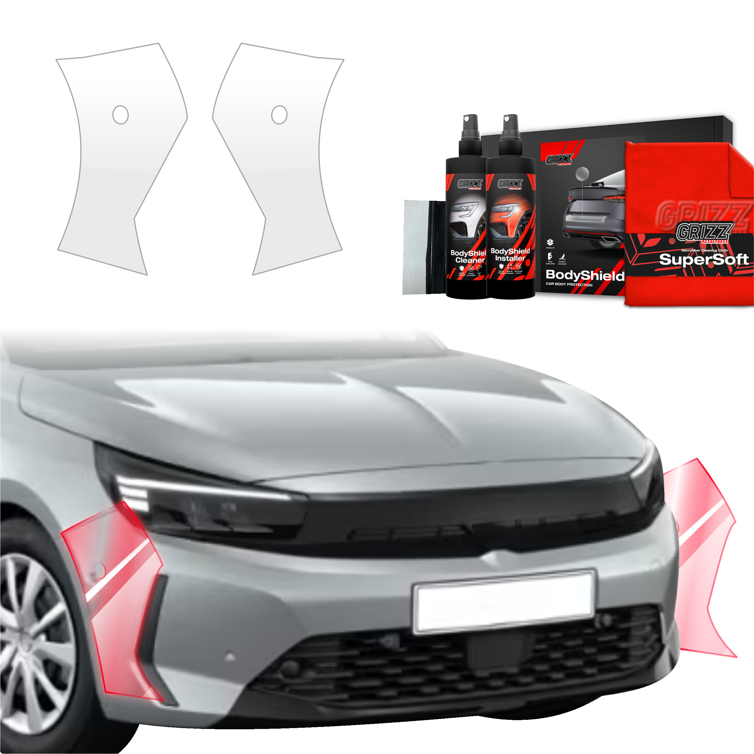 Grizz BodyShield je prvotřídní ochranná fólie navržená k ochraně laku vašeho vozidla před mechanickým poškozením a nepříznivými vlivy. Díky vysoké pružnosti a samoregenerační schopnosti dokáže vyplnit drobné škrábance a udržet povrch vozidla v perfektním stavu. Fólie je vyříznuta na míru konkrétním modelům aut, což zajišťuje snadnou instalaci a bezchybné přizpůsobení.