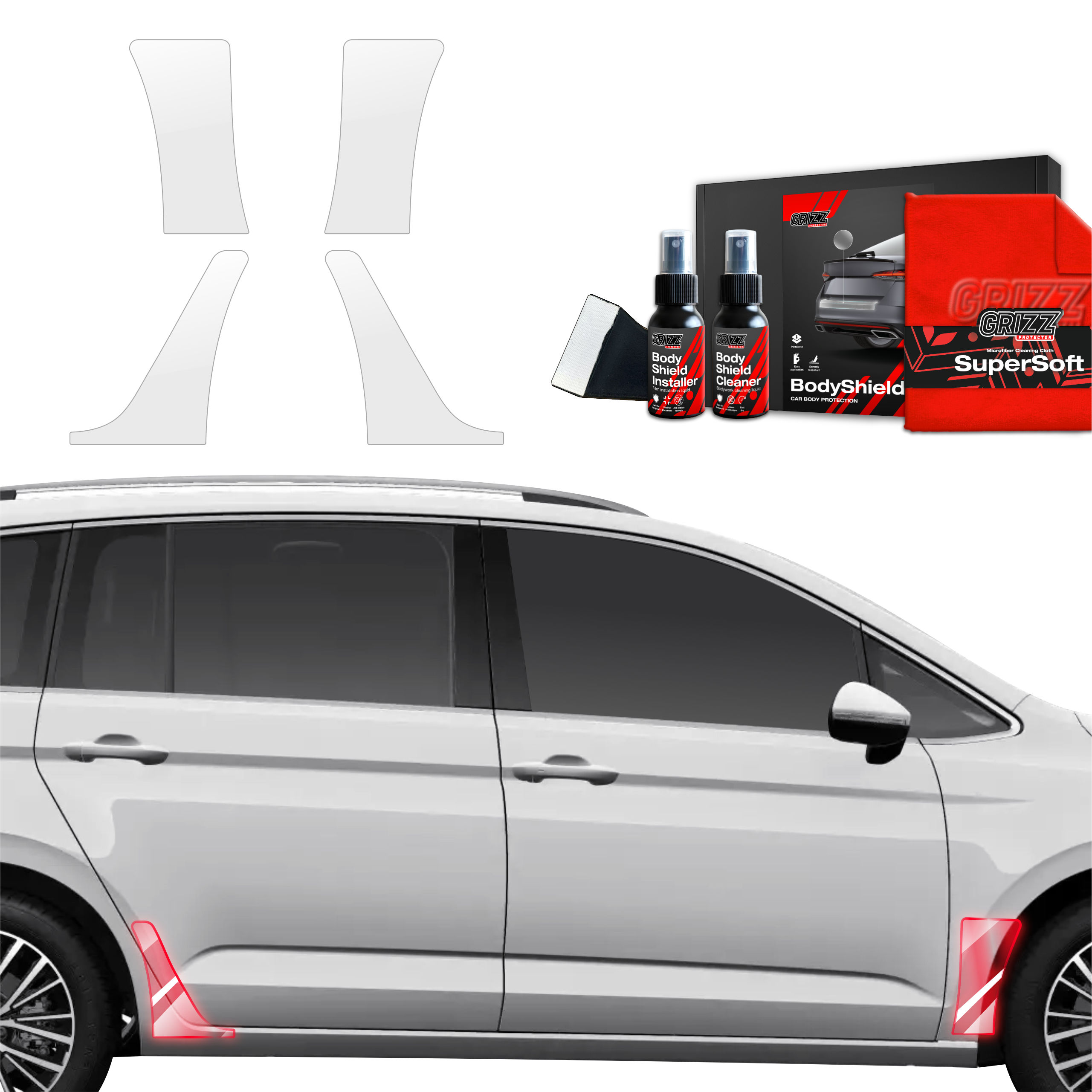 Grizz BodyShield je prvotřídní ochranná fólie navržená k ochraně laku vašeho vozidla před mechanickým poškozením a nepříznivými vlivy. Díky vysoké pružnosti a samoregenerační schopnosti dokáže vyplnit drobné škrábance a udržet povrch vozidla v perfektním stavu. Fólie je vyříznuta na míru konkrétním modelům aut, což zajišťuje snadnou instalaci a bezchybné přizpůsobení.