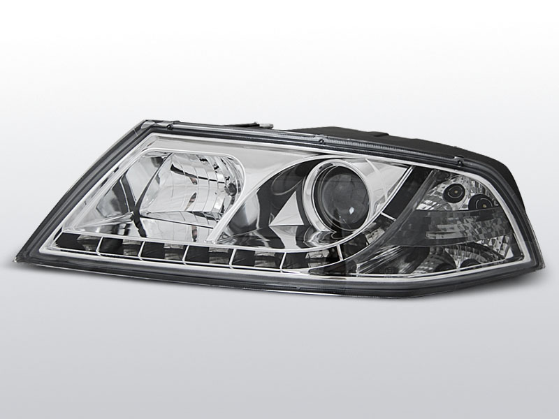 Světla projektorová (čočka) s LED diodovým páskem. Chromované s integrovanýma směrovkama.