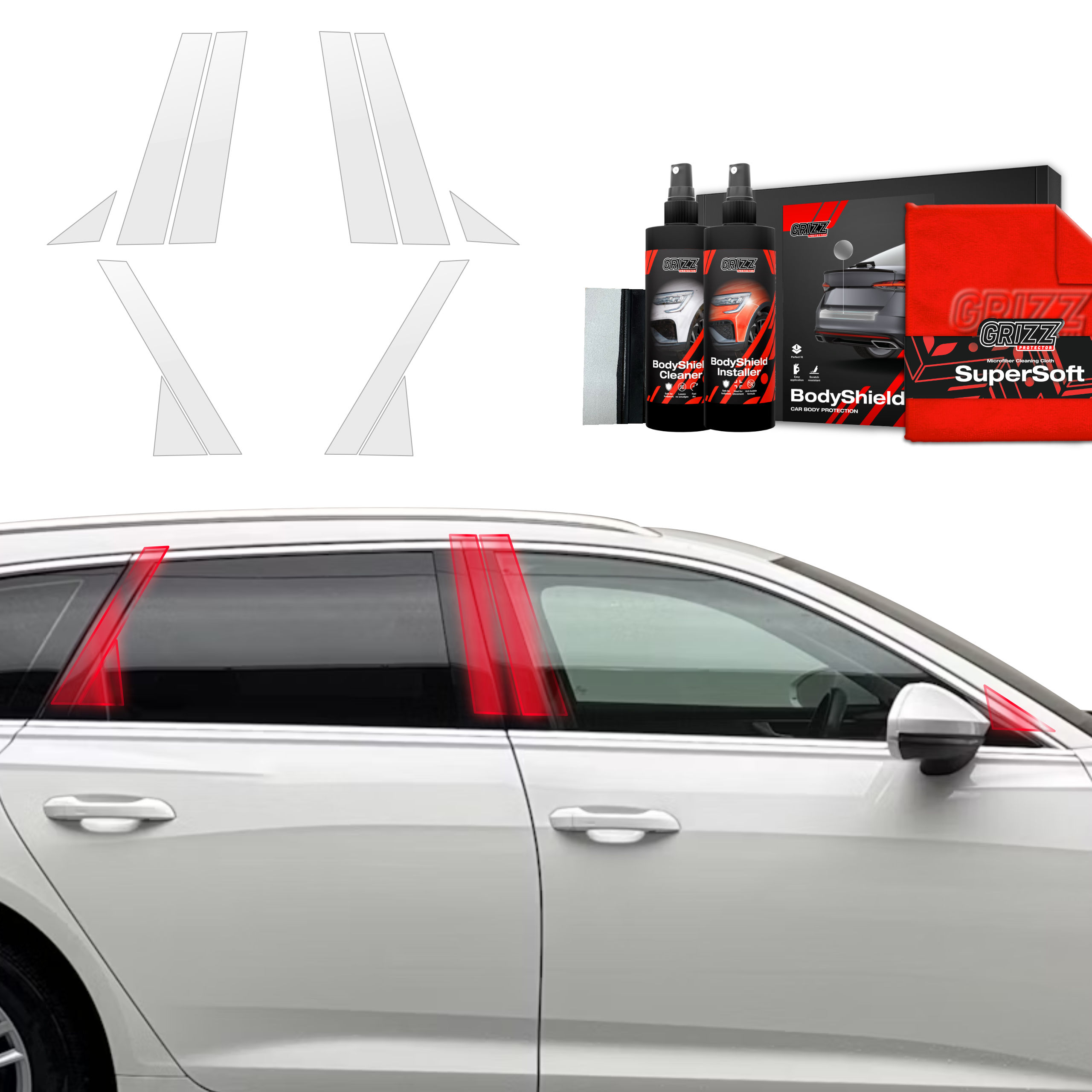 Grizz BodyShield je prvotřídní ochranná fólie navržená k ochraně laku vašeho vozidla před mechanickým poškozením a nepříznivými vlivy. Díky vysoké pružnosti a samoregenerační schopnosti dokáže vyplnit drobné škrábance a udržet povrch vozidla v perfektním stavu. Fólie je vyříznuta na míru konkrétním modelům aut, což zajišťuje snadnou instalaci a bezchybné přizpůsobení.
