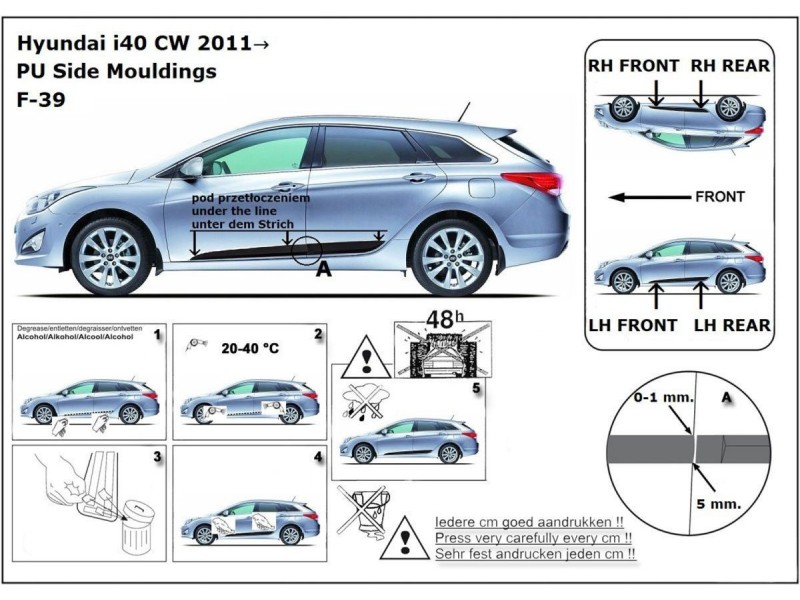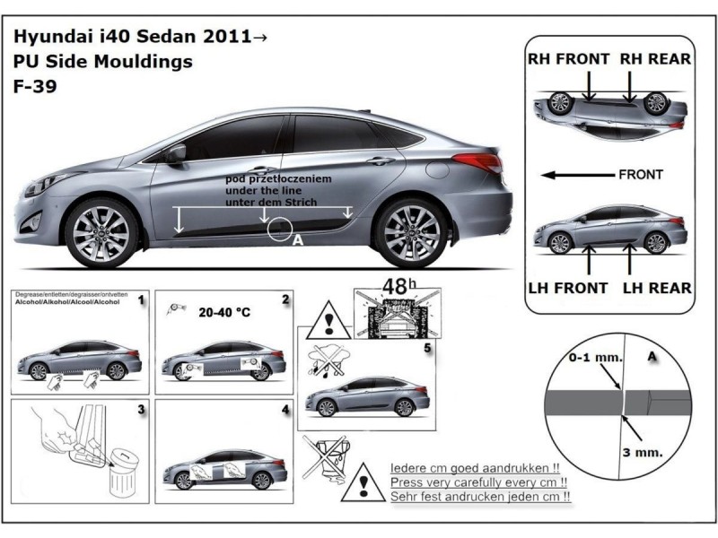 Ochranné boční lišty na dveře, Hyundai i40, 2011-2019, Sedan, Combi