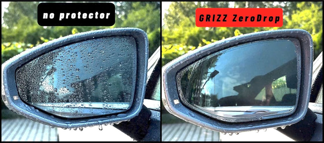 Na rozdíl od univerzálních fólií GRIZZ ZeroDrop pokrývá celou plochu zrcátka, a tak poskytuje maximální ochranu i čistý výhled po celý rok. Prakticky neviditelná vrstva neovlivňuje vzhled zrcátek, ale výrazně zvyšuje bezpečnost i komfort jízdy.