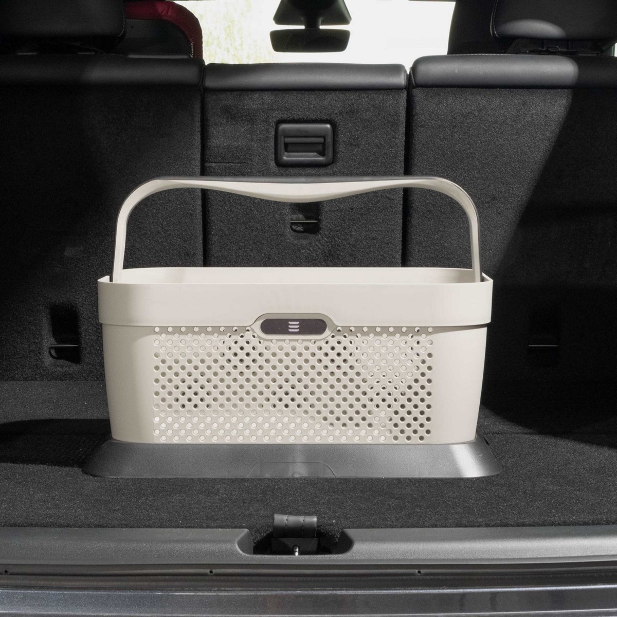 - Podstavec, který zůstává v zavazadlovém prostoru a košík do něj jen vložíte – takto se Vám již nic v autě nevysype
