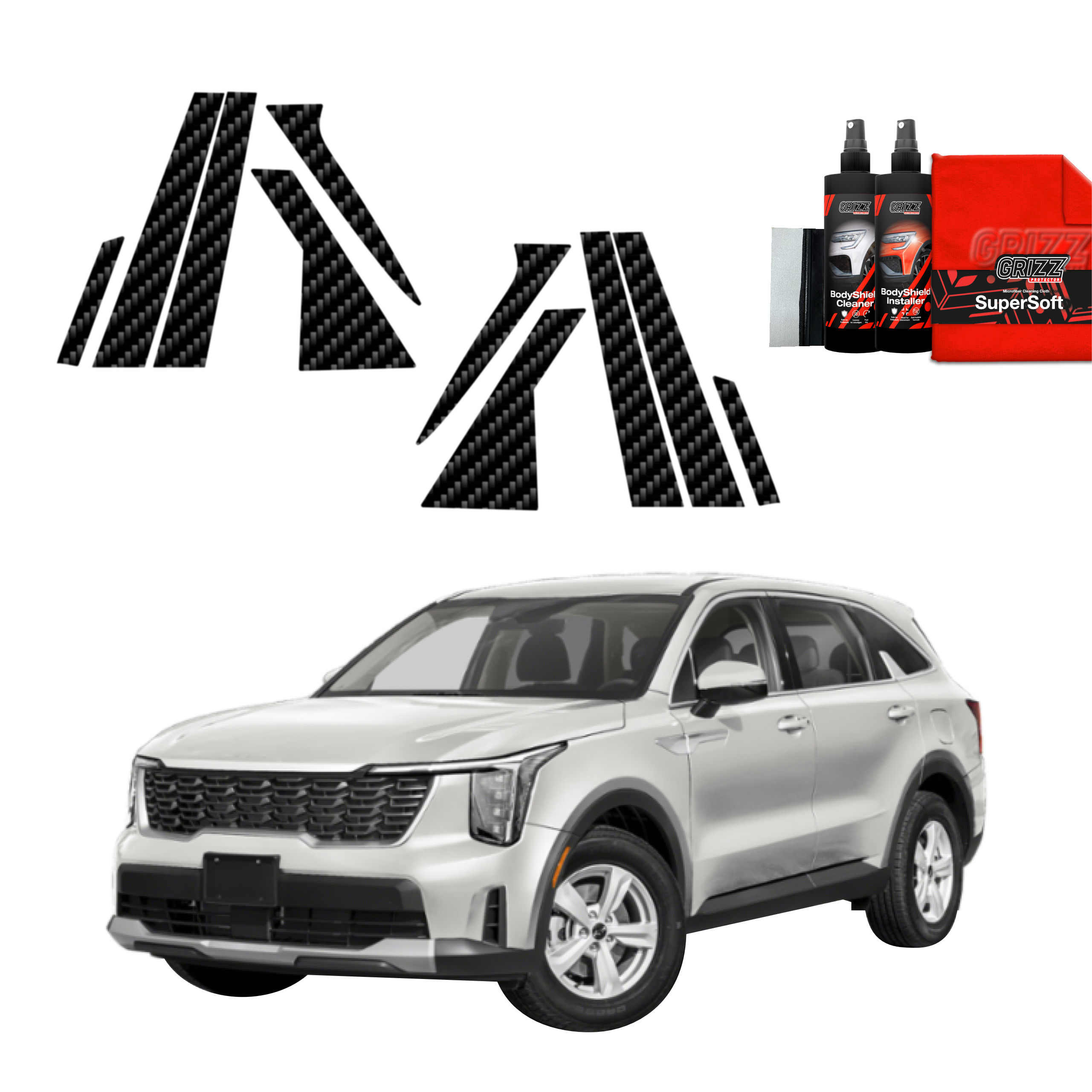 Carbonová fólie na sloupky, Kia Sorento IV, 2023- ,