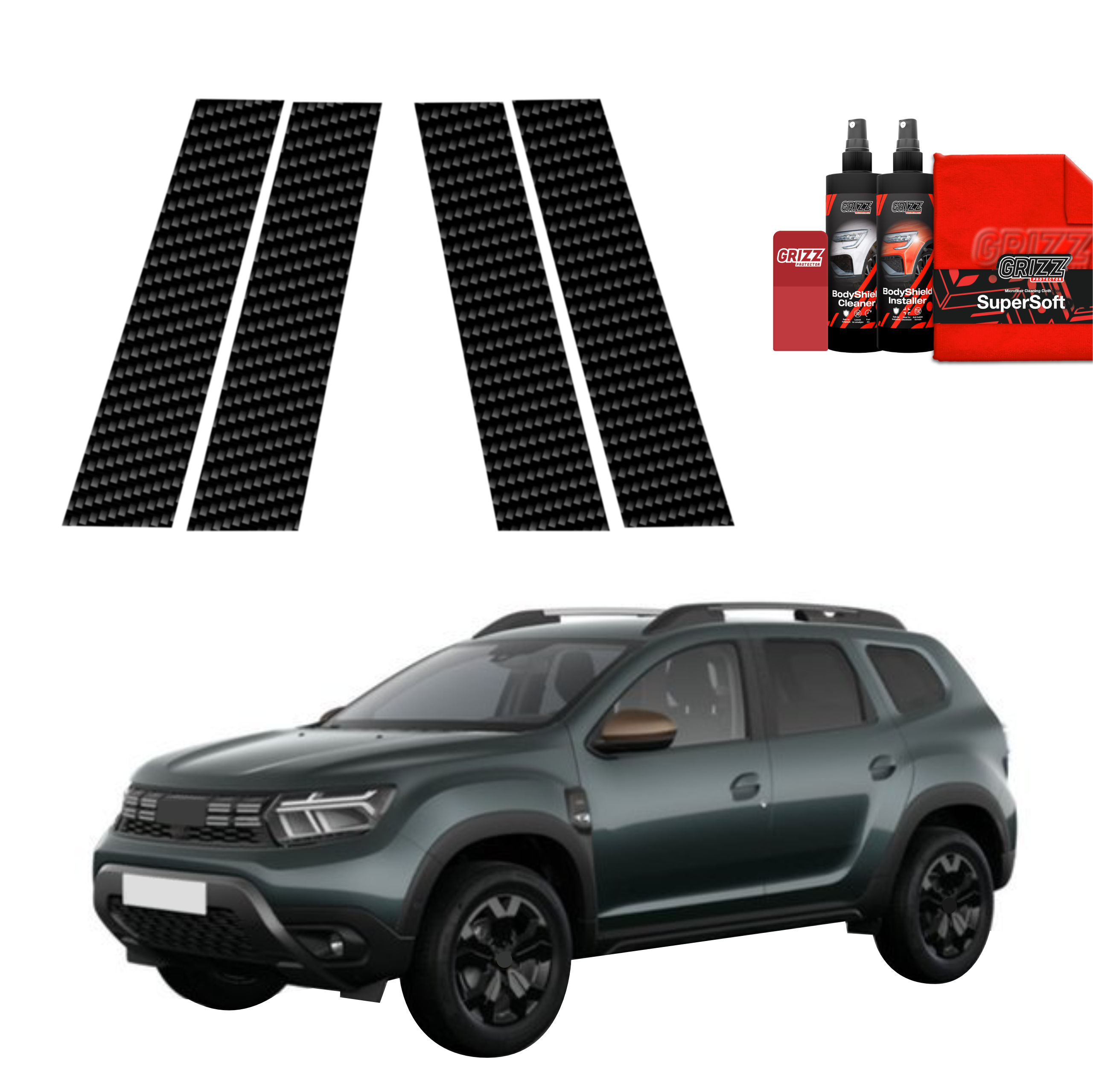 Carbonová fólie na sloupky, Dacia Duster III, 2024- ,