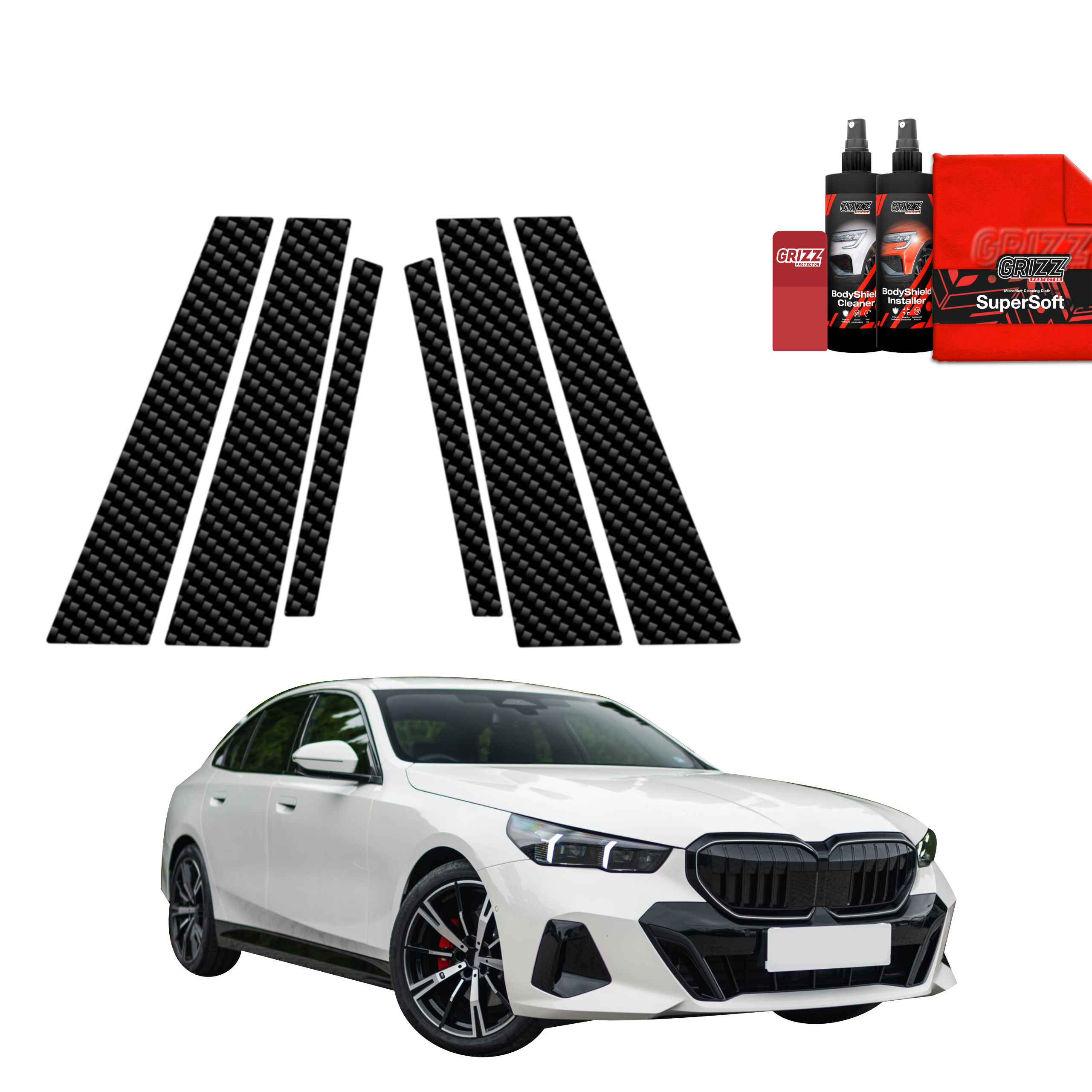 Carbonová fólie na sloupky, BMW 5, G61, 2024- , Combi, Touring
