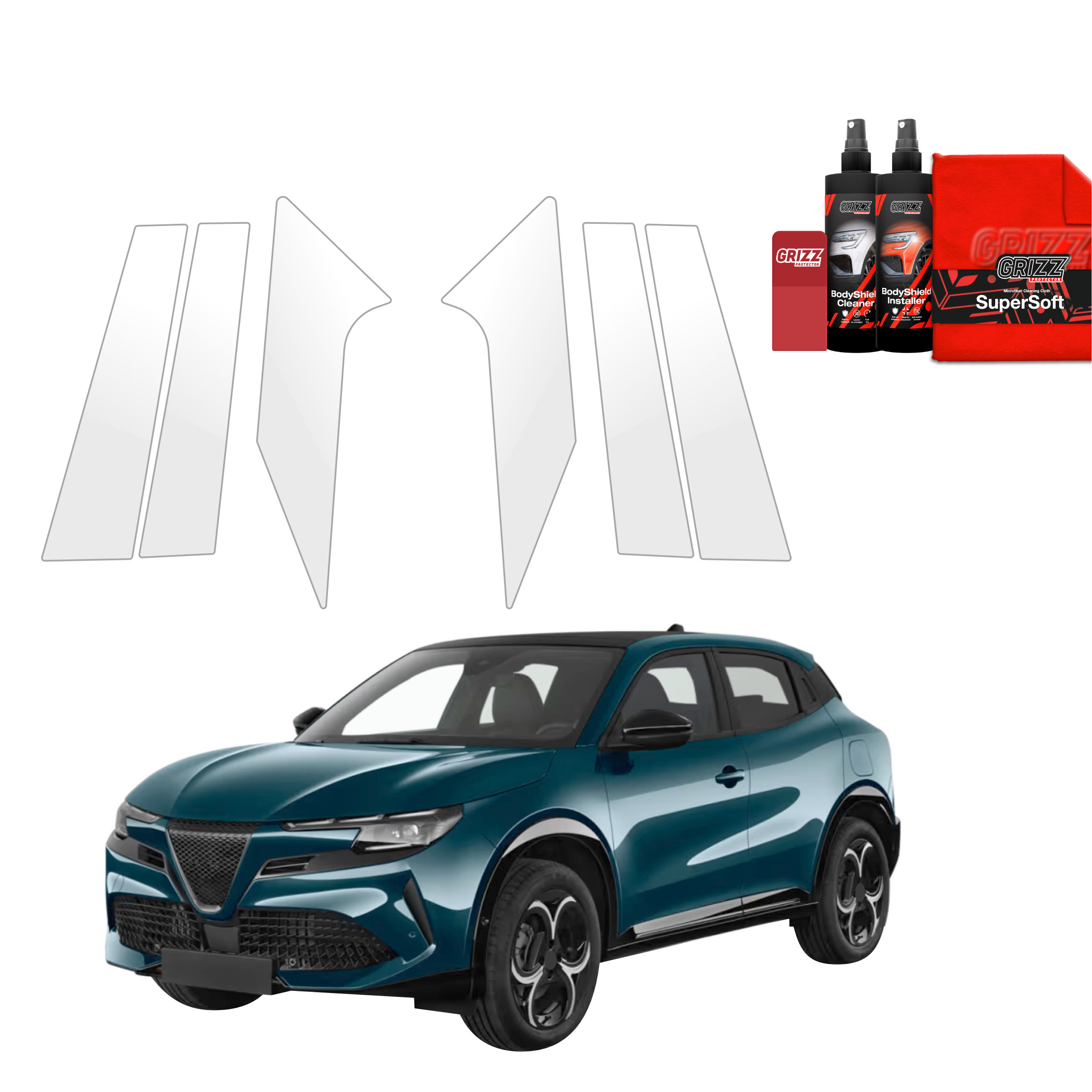 Grizz BodyShield je prvotřídní ochranná fólie navržená k ochraně laku vašeho vozidla před mechanickým poškozením a nepříznivými vlivy. Díky vysoké pružnosti a samoregenerační schopnosti dokáže vyplnit drobné škrábance a udržet povrch vozidla v perfektním stavu. Fólie je vyříznuta na míru konkrétním modelům aut, což zajišťuje snadnou instalaci a bezchybné přizpůsobení.