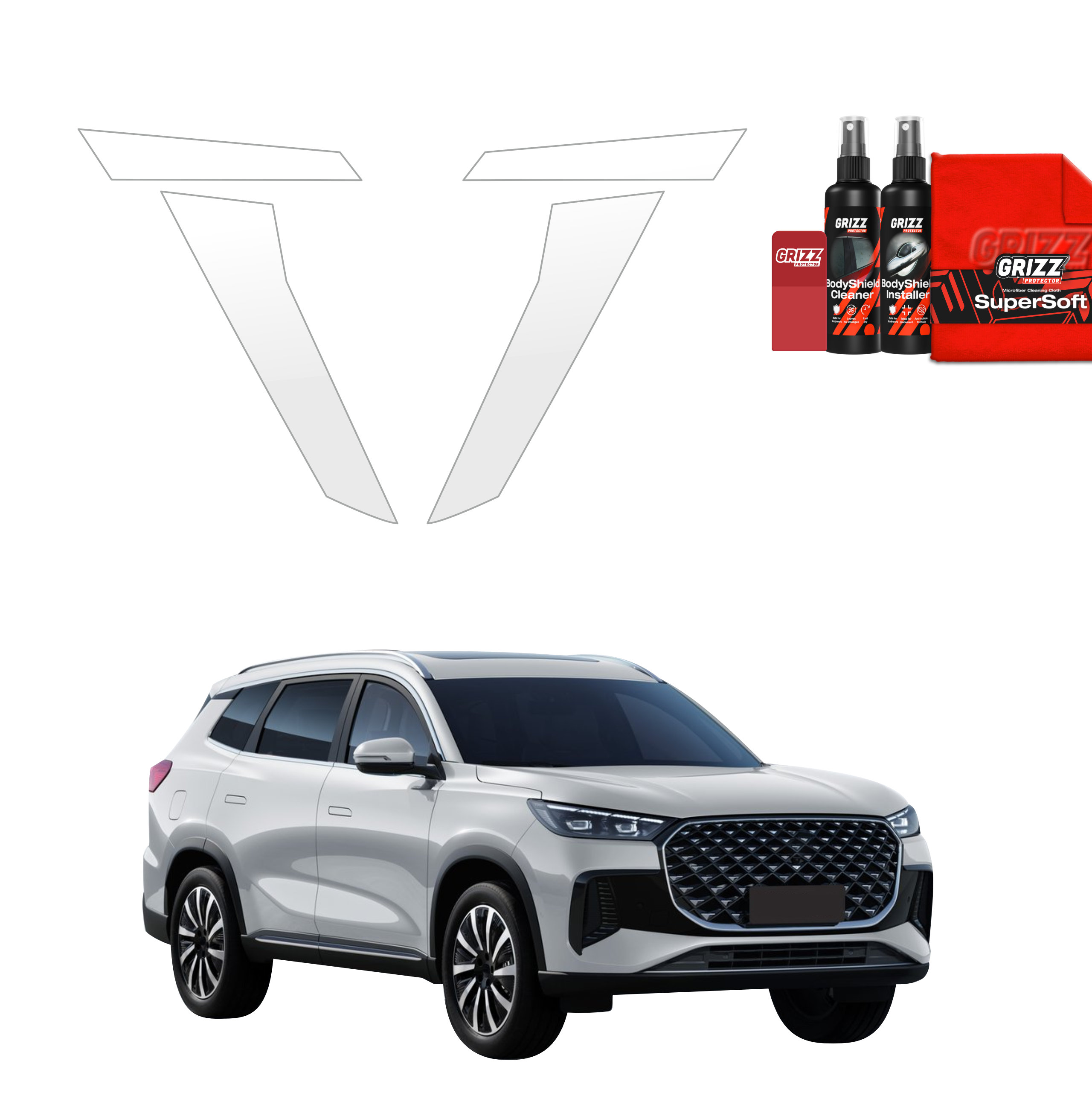 Grizz BodyShield je prvotřídní ochranná fólie navržená k ochraně laku vašeho vozidla před mechanickým poškozením a nepříznivými vlivy. Díky vysoké pružnosti a samoregenerační schopnosti dokáže vyplnit drobné škrábance a udržet povrch vozidla v perfektním stavu. Fólie je vyříznuta na míru konkrétním modelům aut, což zajišťuje snadnou instalaci a bezchybné přizpůsobení.