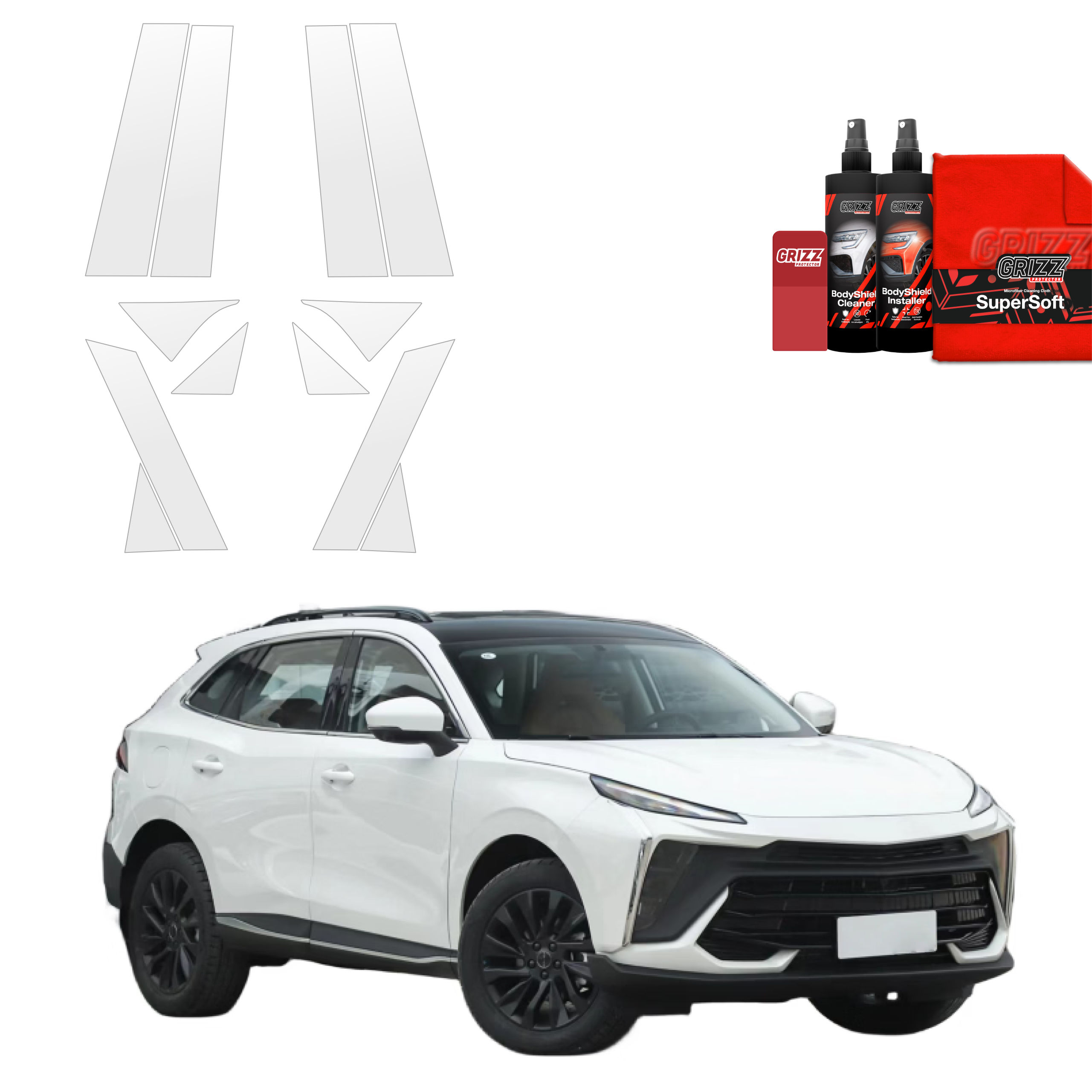 Grizz BodyShield je prvotřídní ochranná fólie navržená k ochraně laku vašeho vozidla před mechanickým poškozením a nepříznivými vlivy. Díky vysoké pružnosti a samoregenerační schopnosti dokáže vyplnit drobné škrábance a udržet povrch vozidla v perfektním stavu. Fólie je vyříznuta na míru konkrétním modelům aut, což zajišťuje snadnou instalaci a bezchybné přizpůsobení.