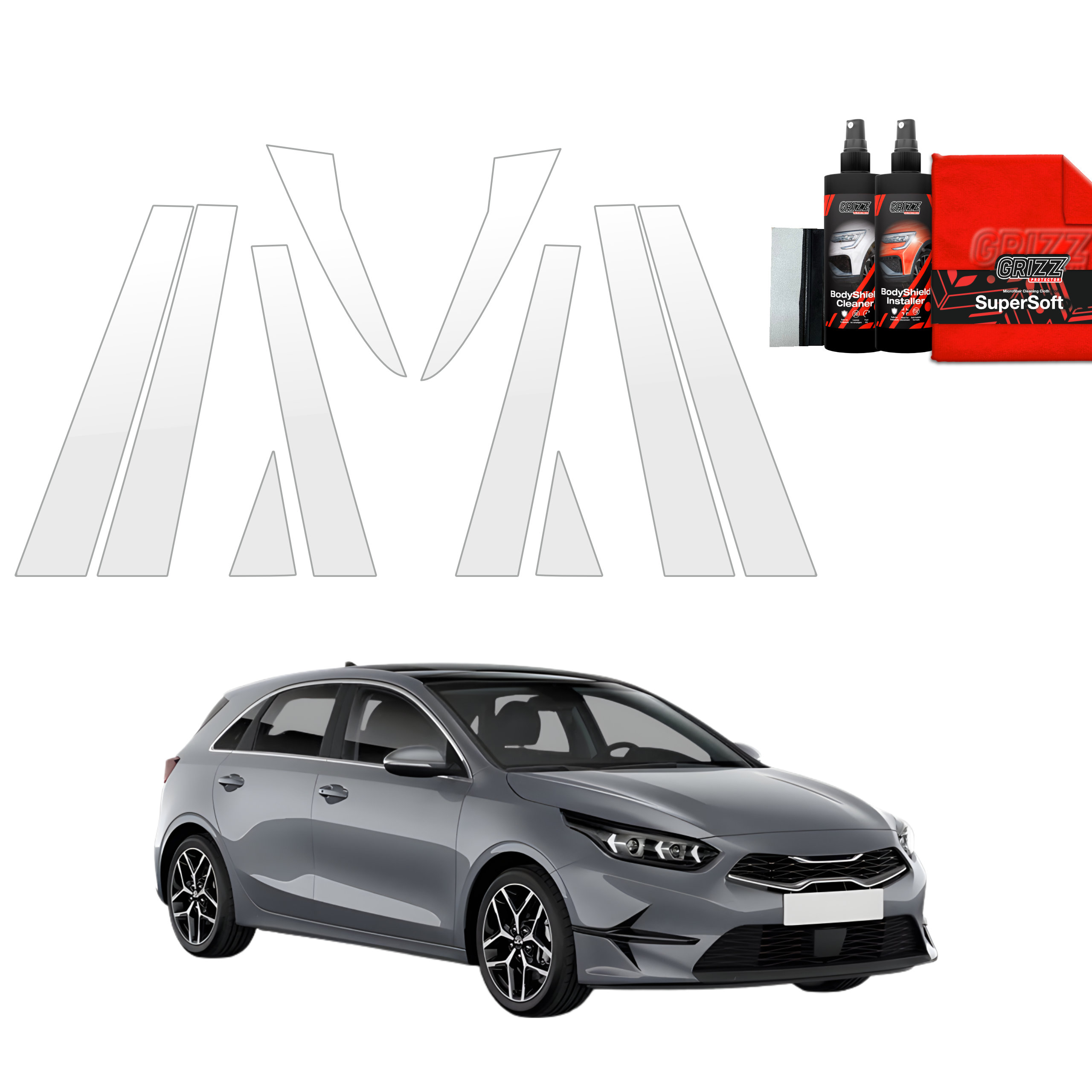 Grizz BodyShield je prvotřídní ochranná fólie navržená k ochraně laku vašeho vozidla před mechanickým poškozením a nepříznivými vlivy. Díky vysoké pružnosti a samoregenerační schopnosti dokáže vyplnit drobné škrábance a udržet povrch vozidla v perfektním stavu. Fólie je vyříznuta na míru konkrétním modelům aut, což zajišťuje snadnou instalaci a bezchybné přizpůsobení.