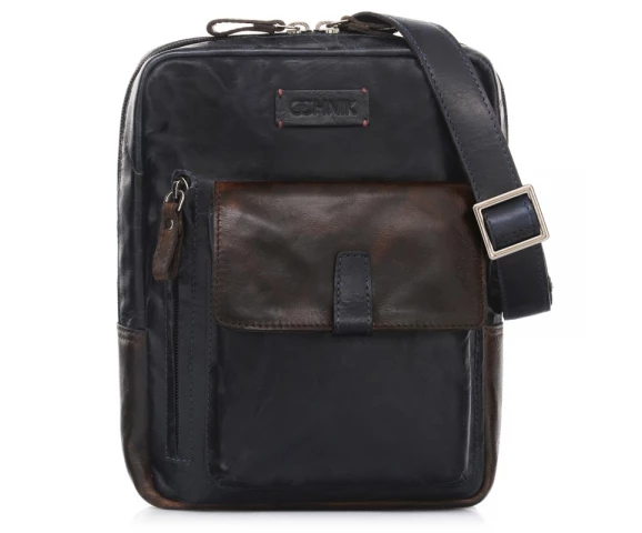 PÁNSKÁ KOŽENÁ TAŠKA - LISTONOŠKA, tmavá inkoustová s prvky hnědé