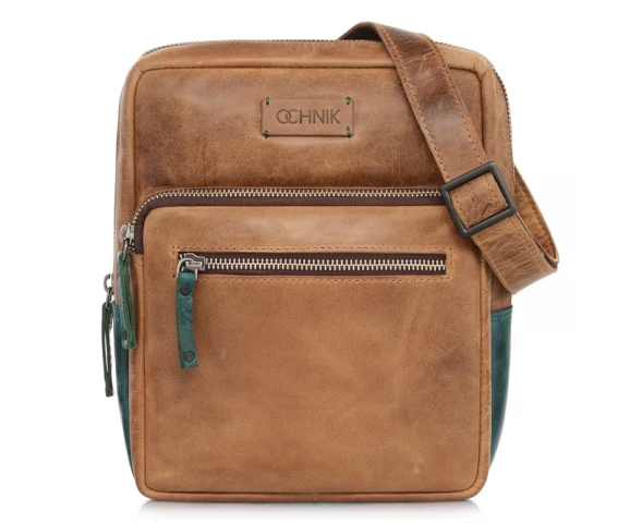PÁNSKÁ KOŽENÁ TAŠKA - LISTONOŠKA, čajová hnědá s mořskou zelení