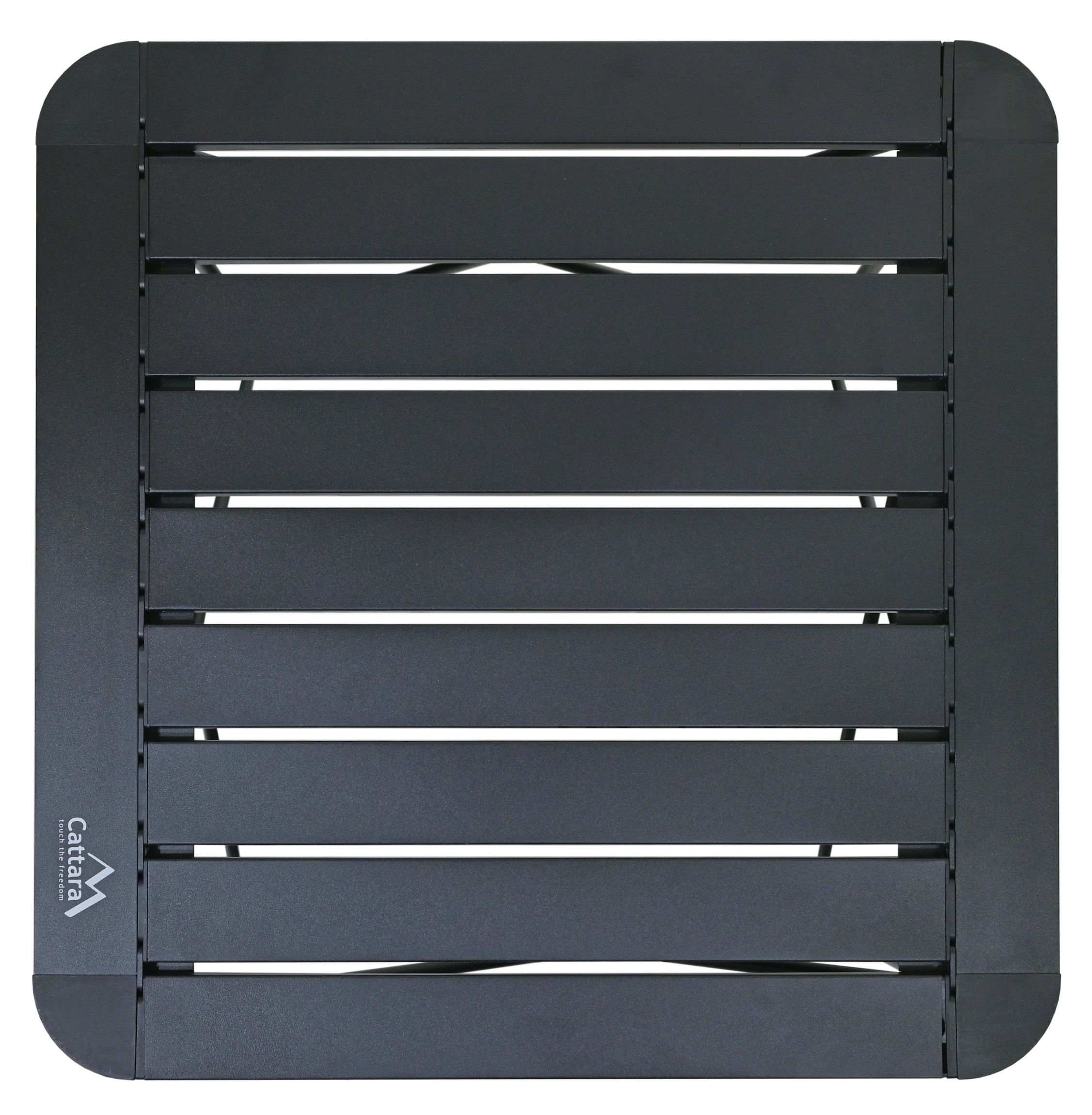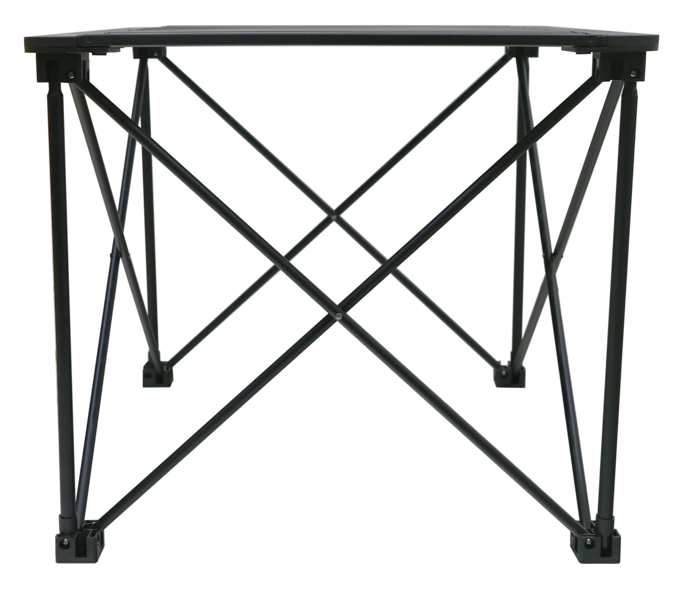 Stůl je opatřen lamelovou plochou s rozměry 52 x 52 cm ve výšce 46 cm a nabízí maximální nosnost až pro 50kg vybavení, potravin apod.