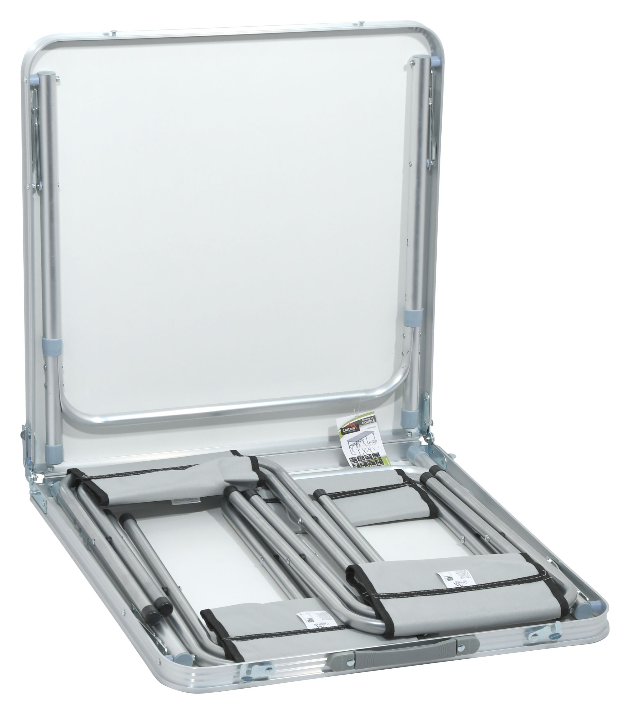 Stůl kemping DOUBLE teleskop. šedý + 4x židlička