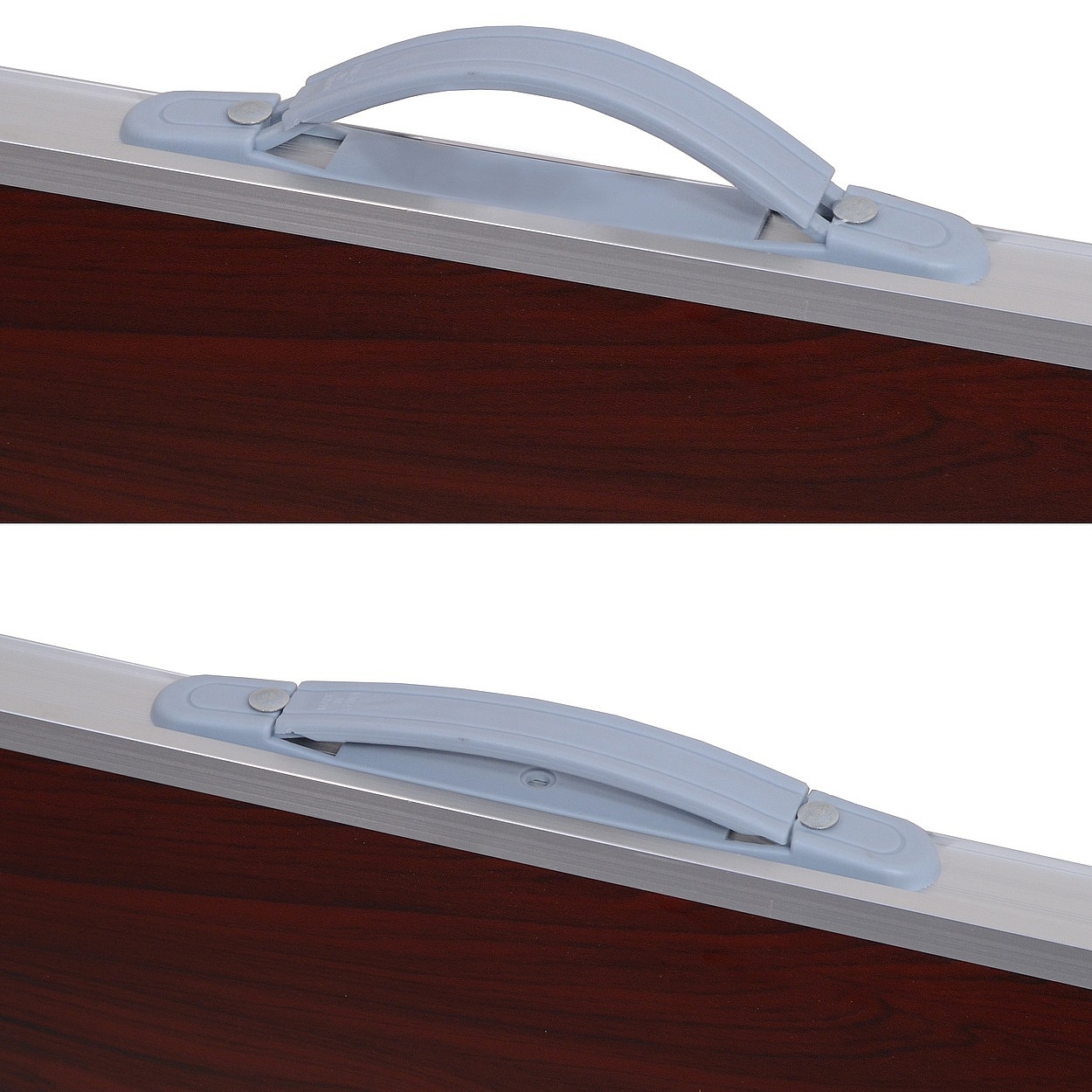 Pro své rozměry 80 x 60 x 4 cm a hmotnost 3,8 kg ve složeném stavu, je stůl skladný a je možné ho přenášet, díky prakticky umístěnému madlu na boku desky.