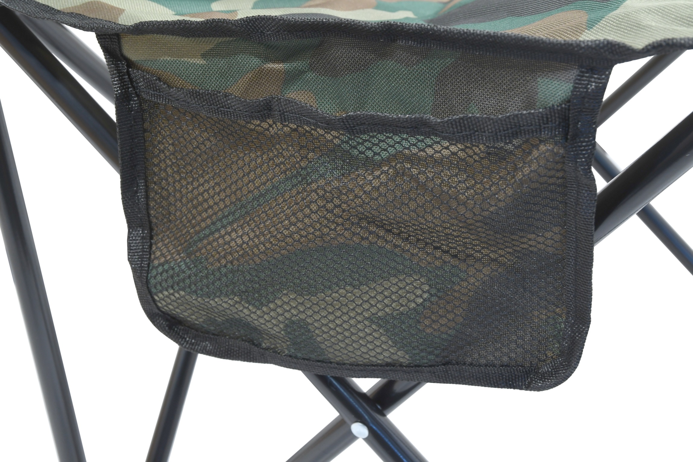 Židle je lehce a rychle složitelná a je vybavena čtyřmi opěrnými nohami, které lze uchytit k zemi za použití stanových kolíků a tím významně zvýšit stabilitu. Židle nabízí pohodlné a stabilní posezení.